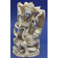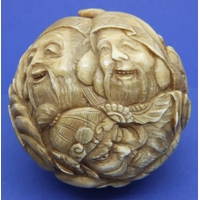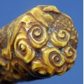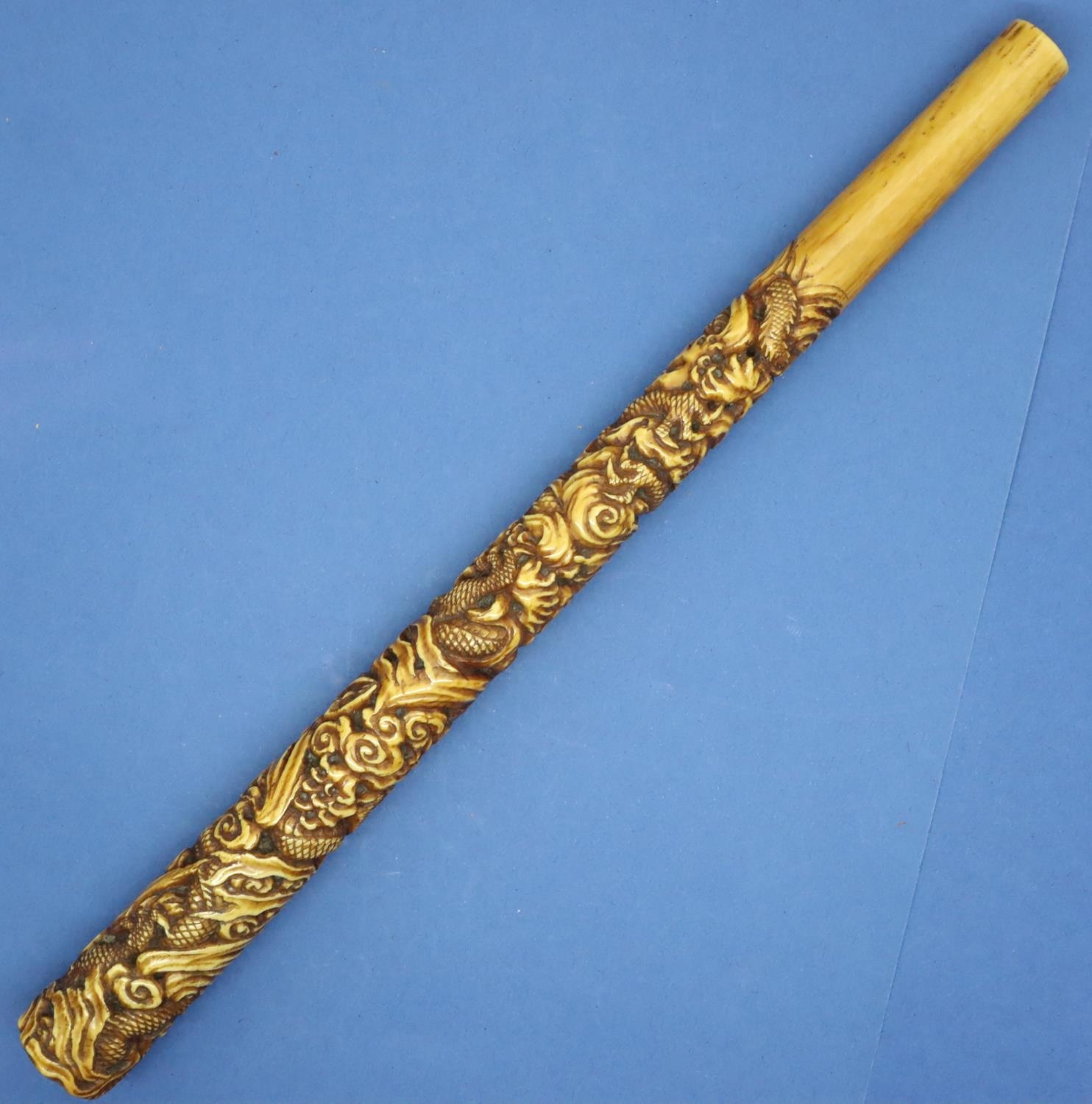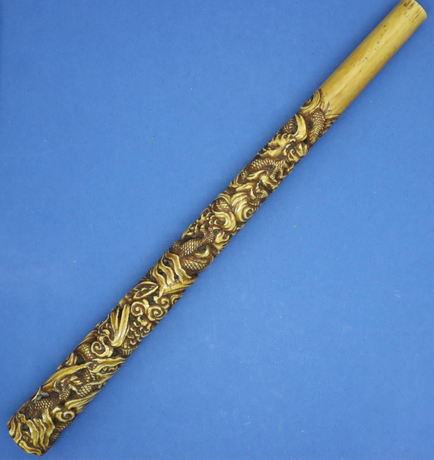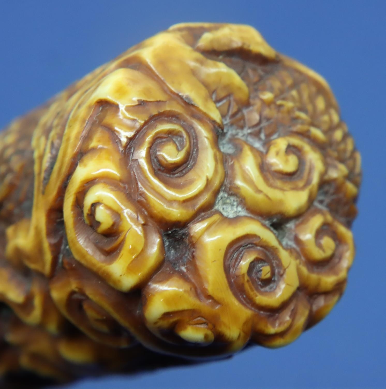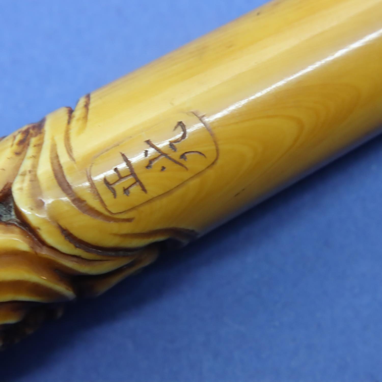 Carved ivory parasol handle, L: 245 mm, signed. P&P Group 1 (£14+VAT for the first lot and £1+VAT for subsequent lots)