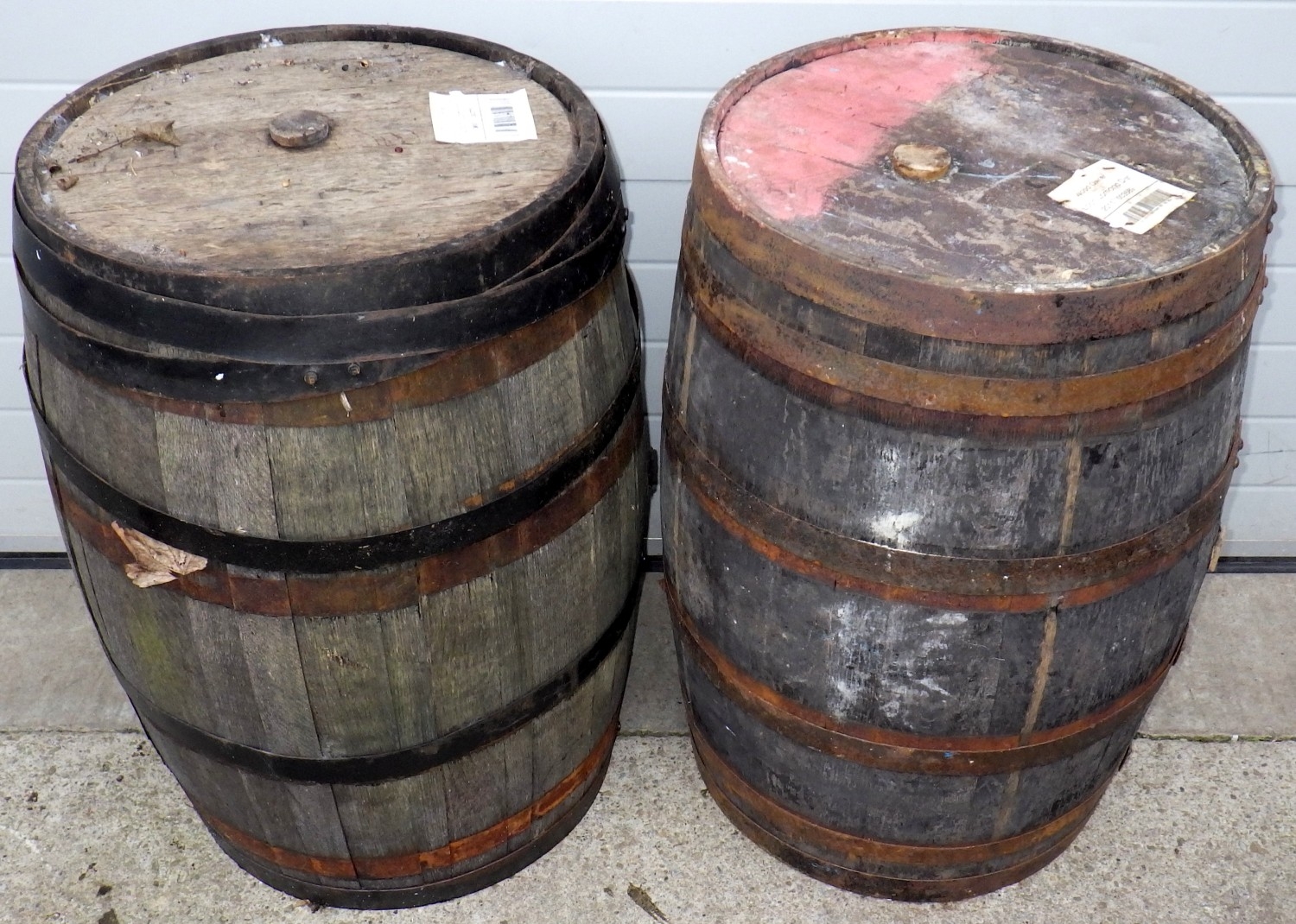 Two coopered barrels, 89cm tall