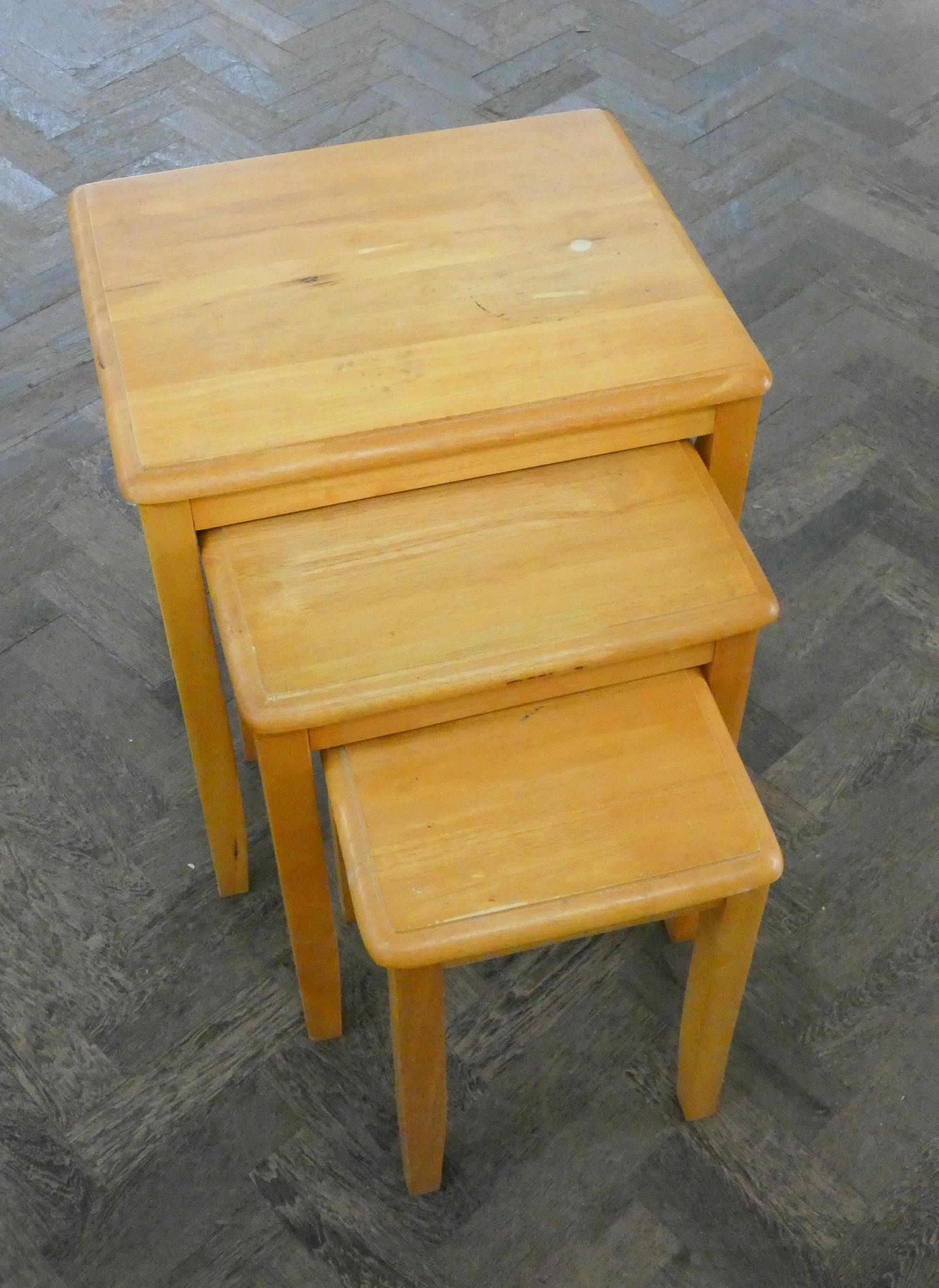 A nest of three modern pine coffee tables