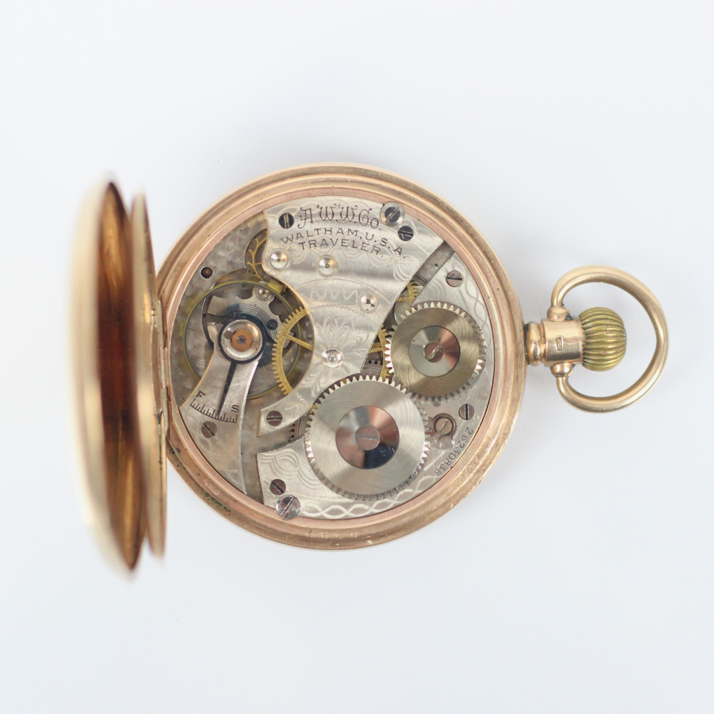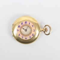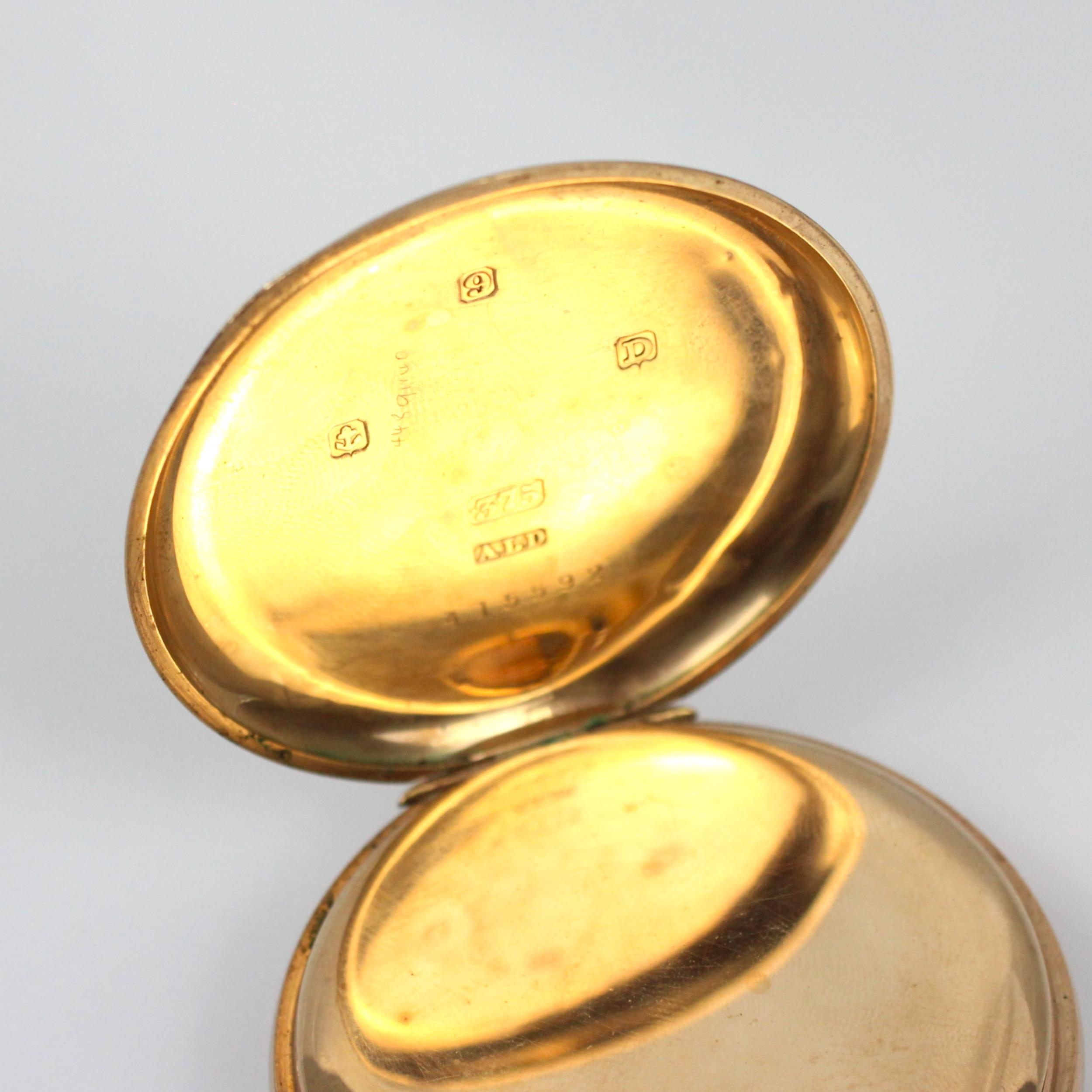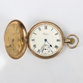 An early 20th century 9ct full hunter pocket watch, the circular white enamel dial with Roman numerals and subsidiary dial to 6 o'clock, stamped to interior 'ALD' Birmingham 1928, 5cm wide, gross weight 92gms (including movement)