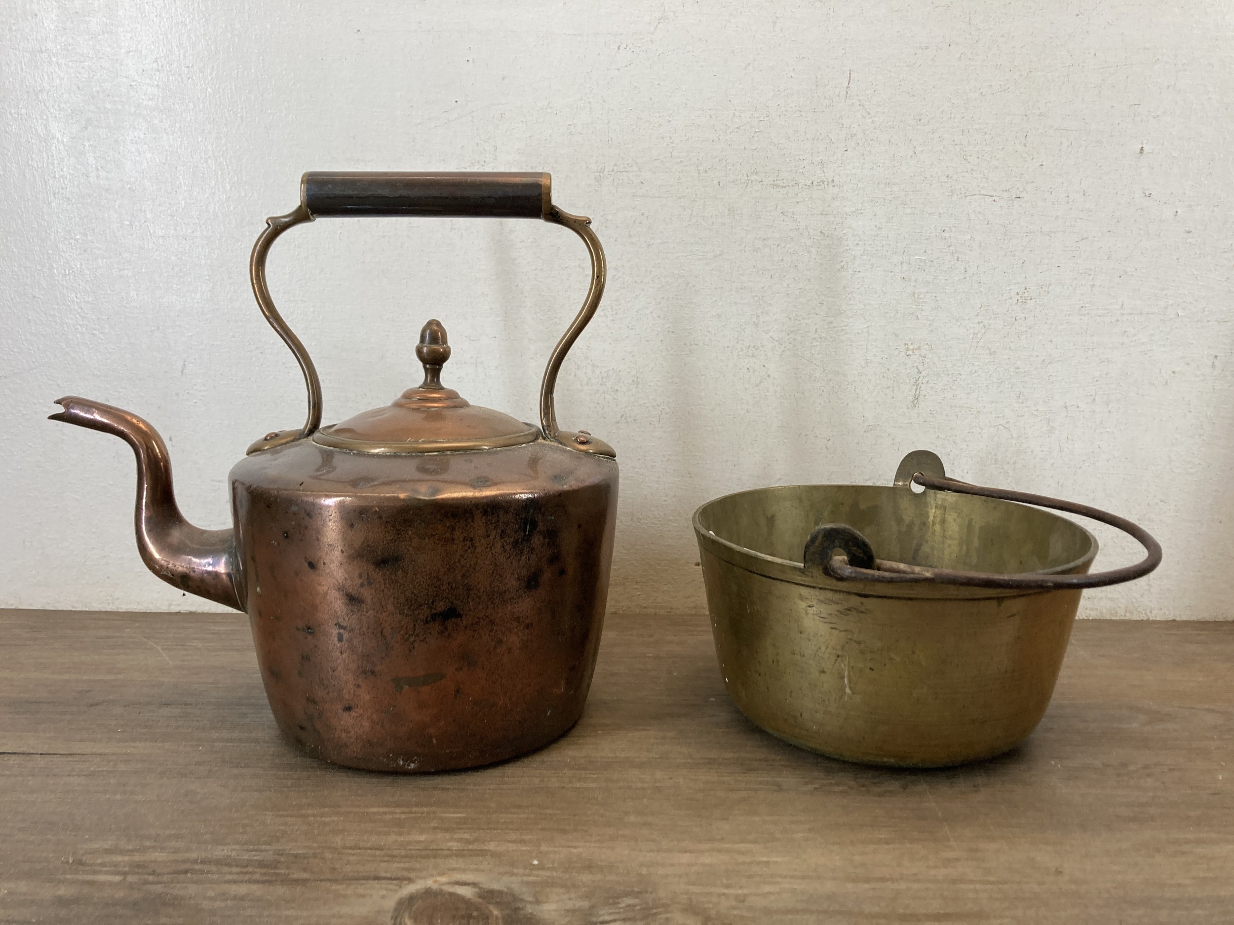 Both copper items show multiple dents and signs of age related wear.