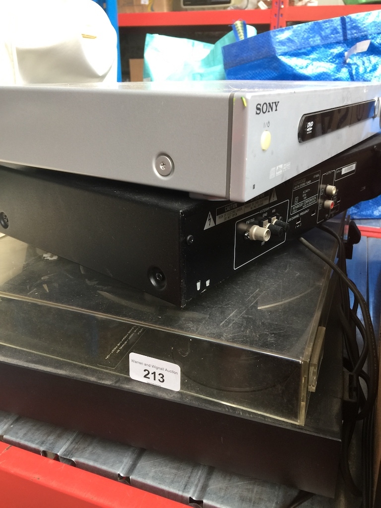 A Pioneer PL-130 turntable, a Kenwood stereo tuner and a Sony DVD player.