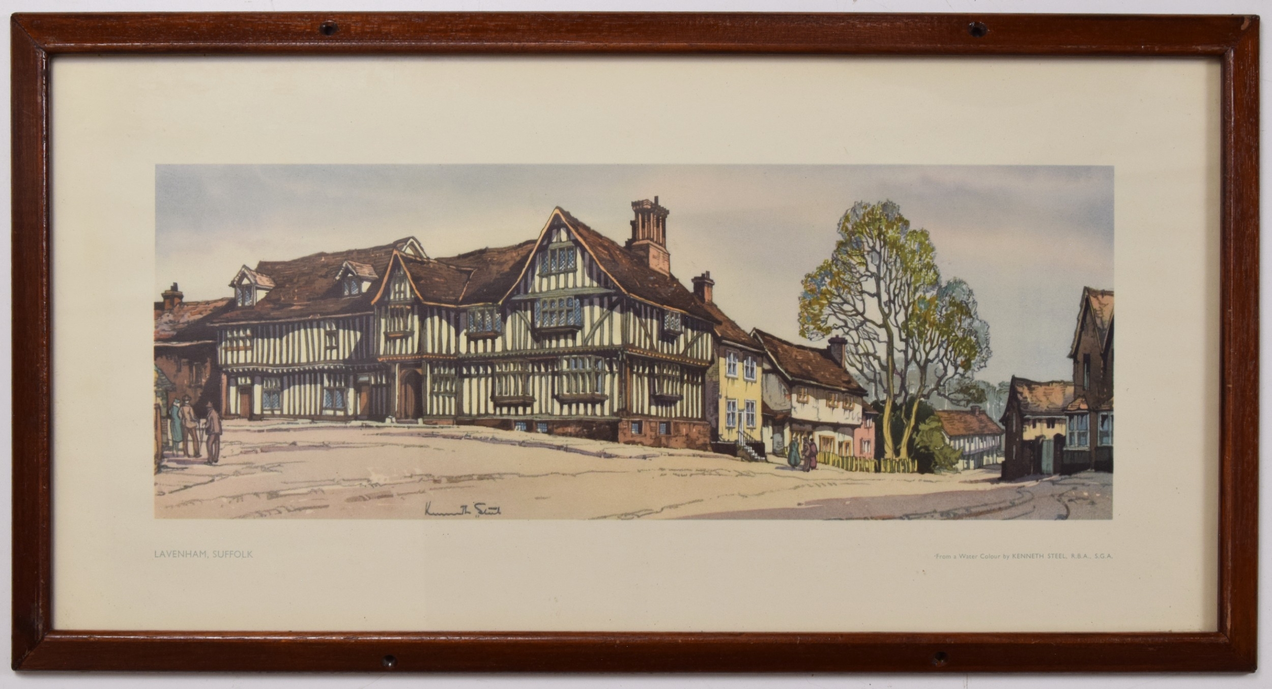 Carriage print, LAVENHAM, SUFFOLK, Kenneth Steel, BR size B, 1948-55. Original style frame, 21 1/4 x 11 1/4 inches. Shipping band - C.