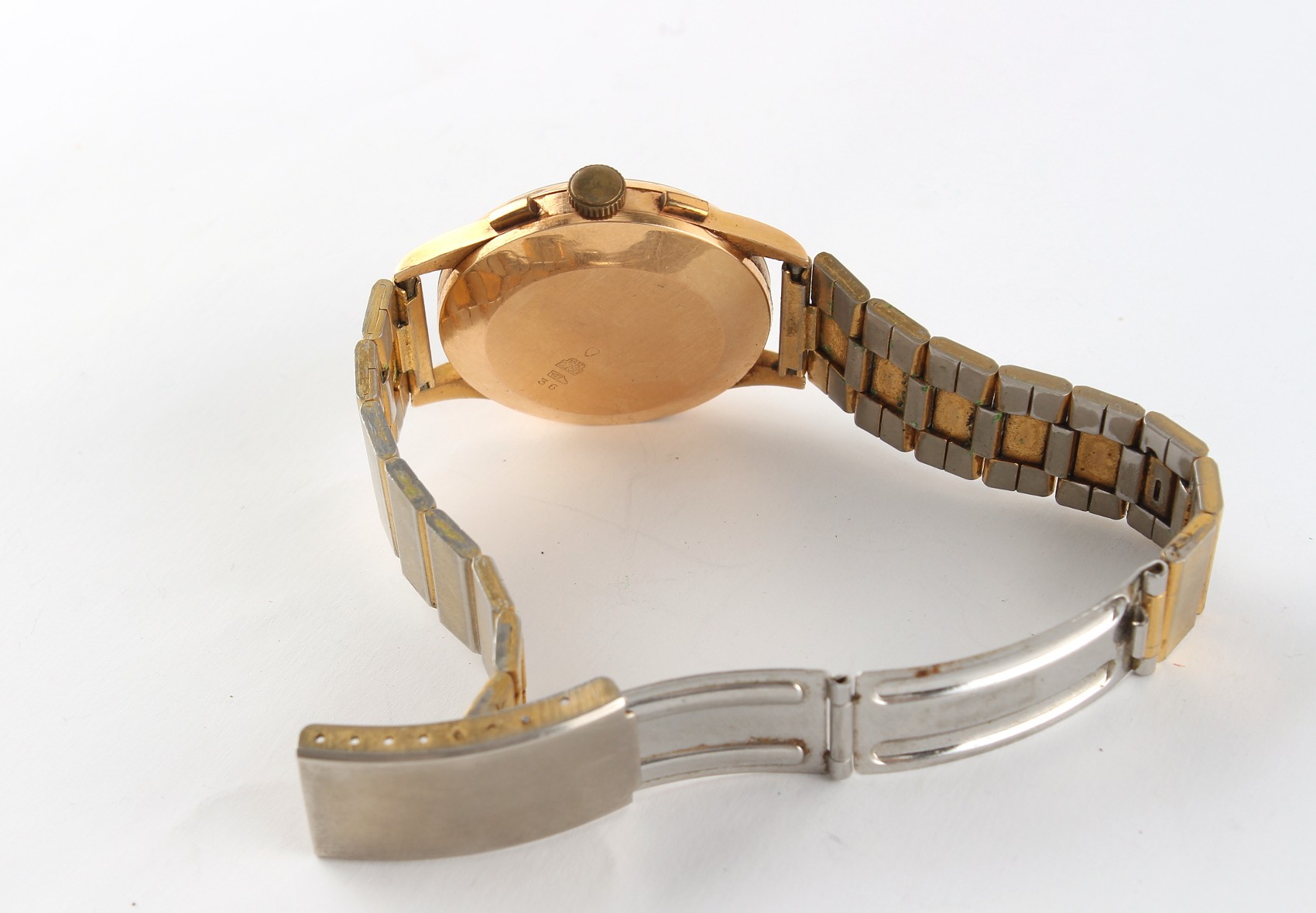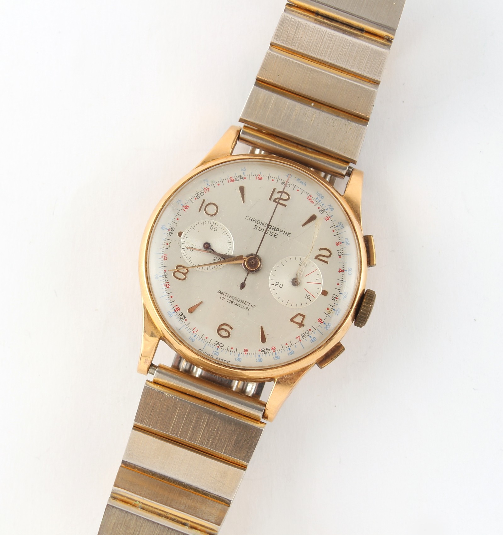 Property of a deceased estate, a private collection of watches - a gentleman's Chronographe Suisse 18ct gold chronograph wristwatch, 37mm diameter, appears to be working but no guarantees are given, on associated non-gold bracelet strap with deployant clasp.