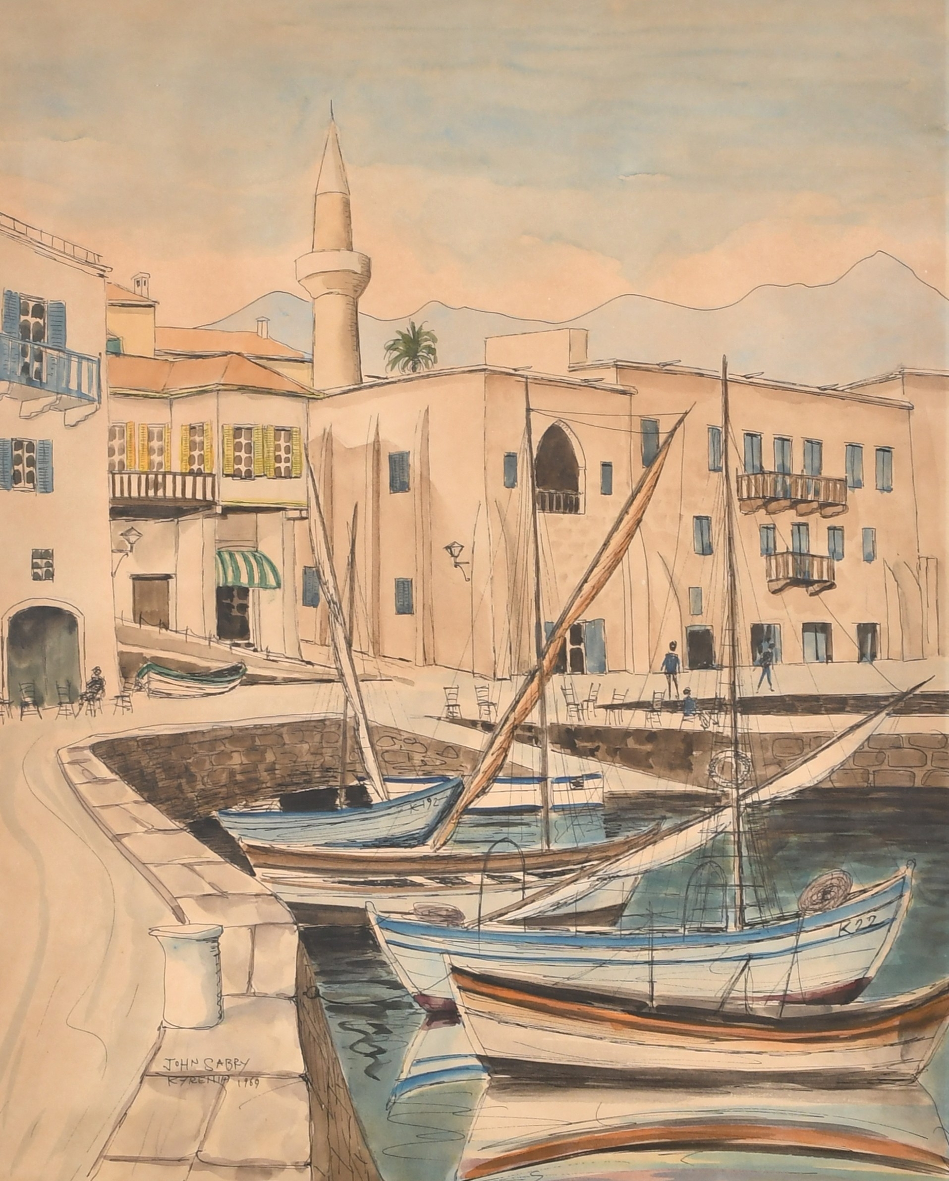 John Sabry (1914-2006) British. "Kyrenia", Watercolour, Signed, inscribed and dated 1969, 20.5" x 16.5" (52.1 x 41.9cm)