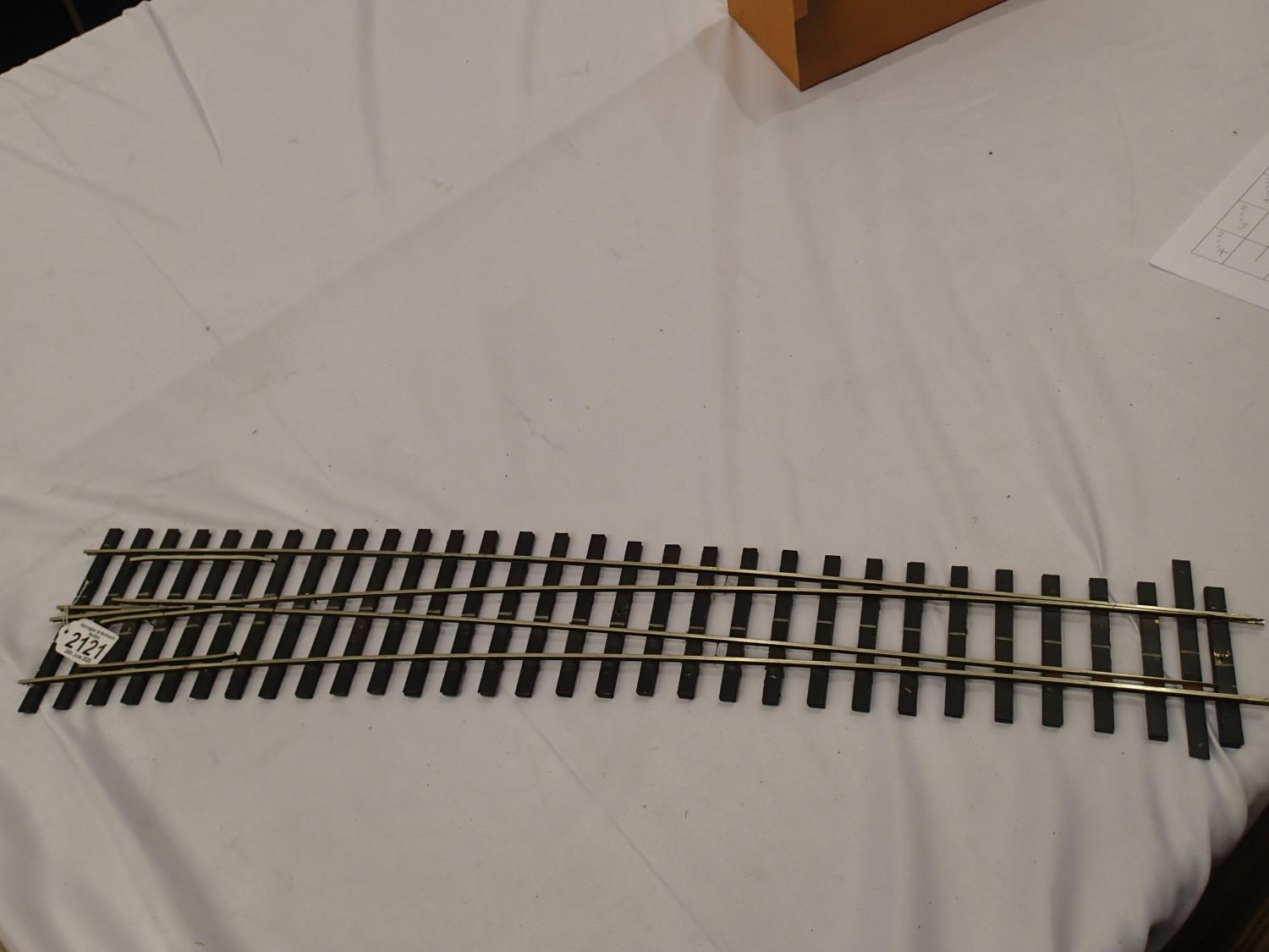 Gauge 1 kit built left hand curved point, L: 77 cm, wooden sleeper, nickel silver, flat bottom rail, good condition. UK P&P Group 1 (£16+VAT for the first lot and £2+VAT for subsequent lots)