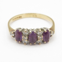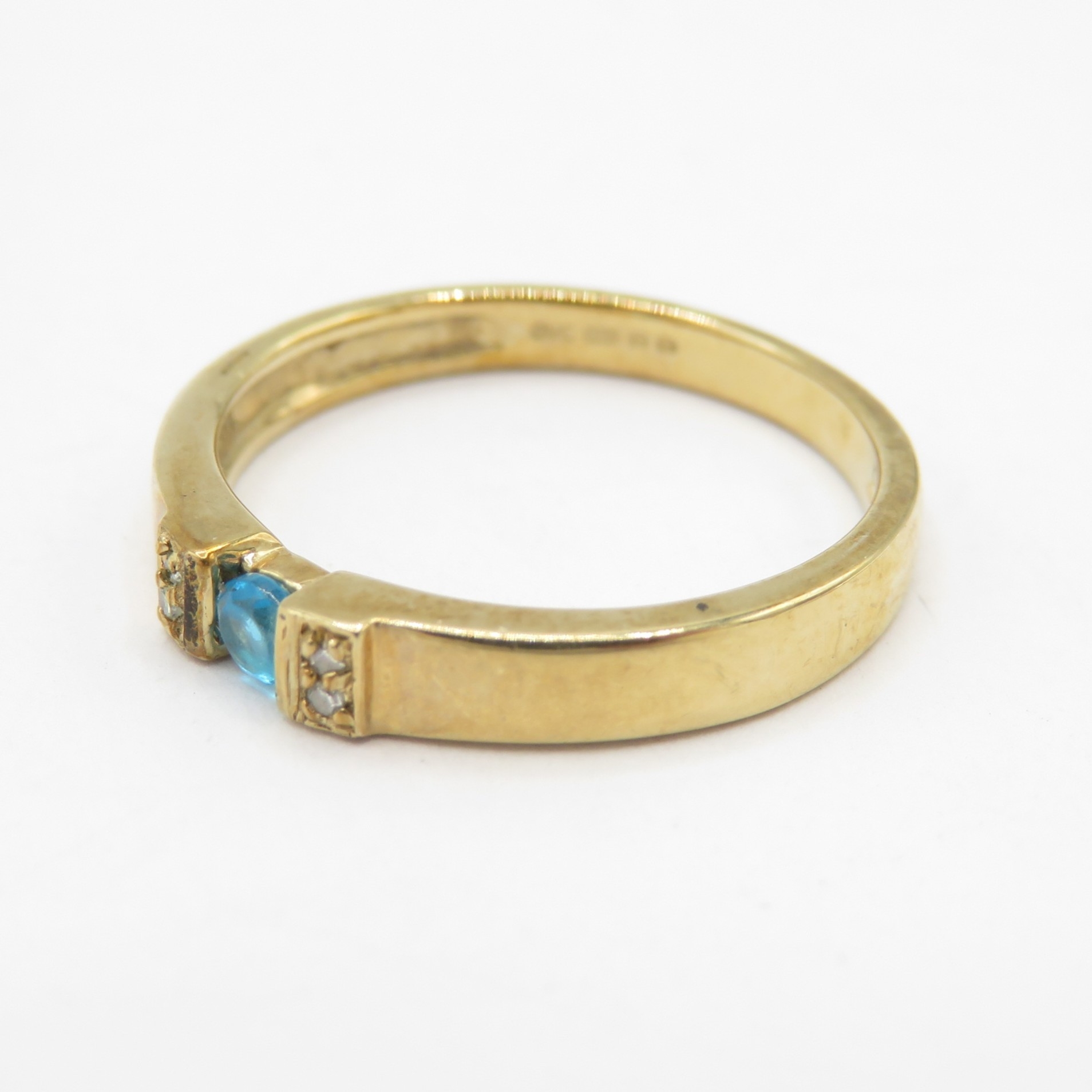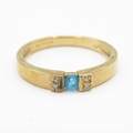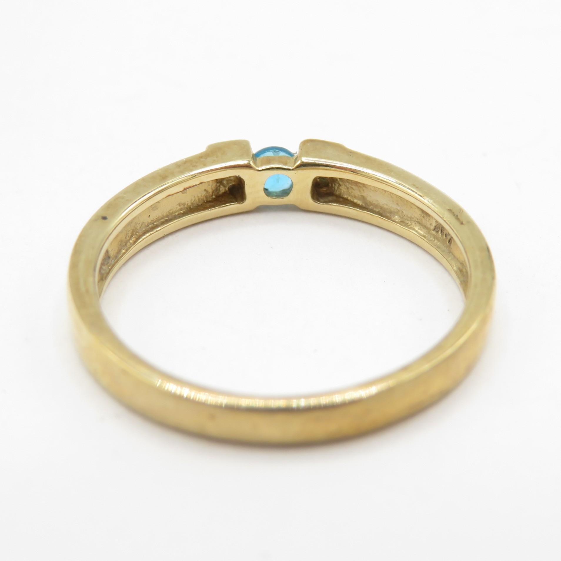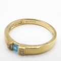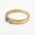 9ct gold blue gemstone tension set ring with diamond shoulders (1.8g) size J