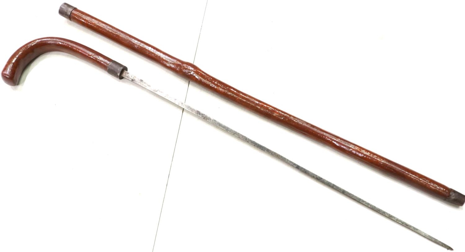 A 19th century sword stick, with tapering square-section blade, overall L: 85 cm, blade L: 54 cm. P&P Group 2 (£18+VAT for the first lot and £3+VAT for subsequent lots)
