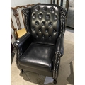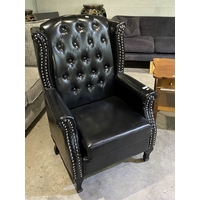 Black faux leather button back Chesterfield wing armchair 112H x 75W