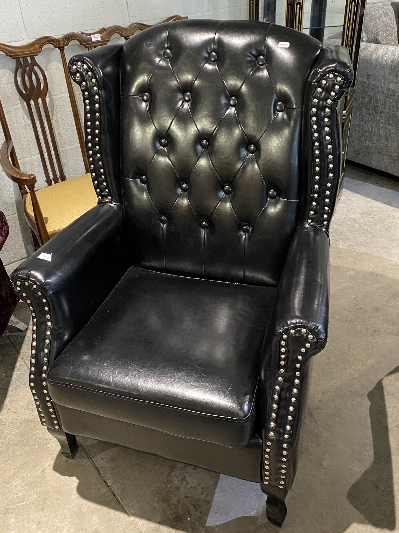 Black faux leather button back Chesterfield wing armchair 11...