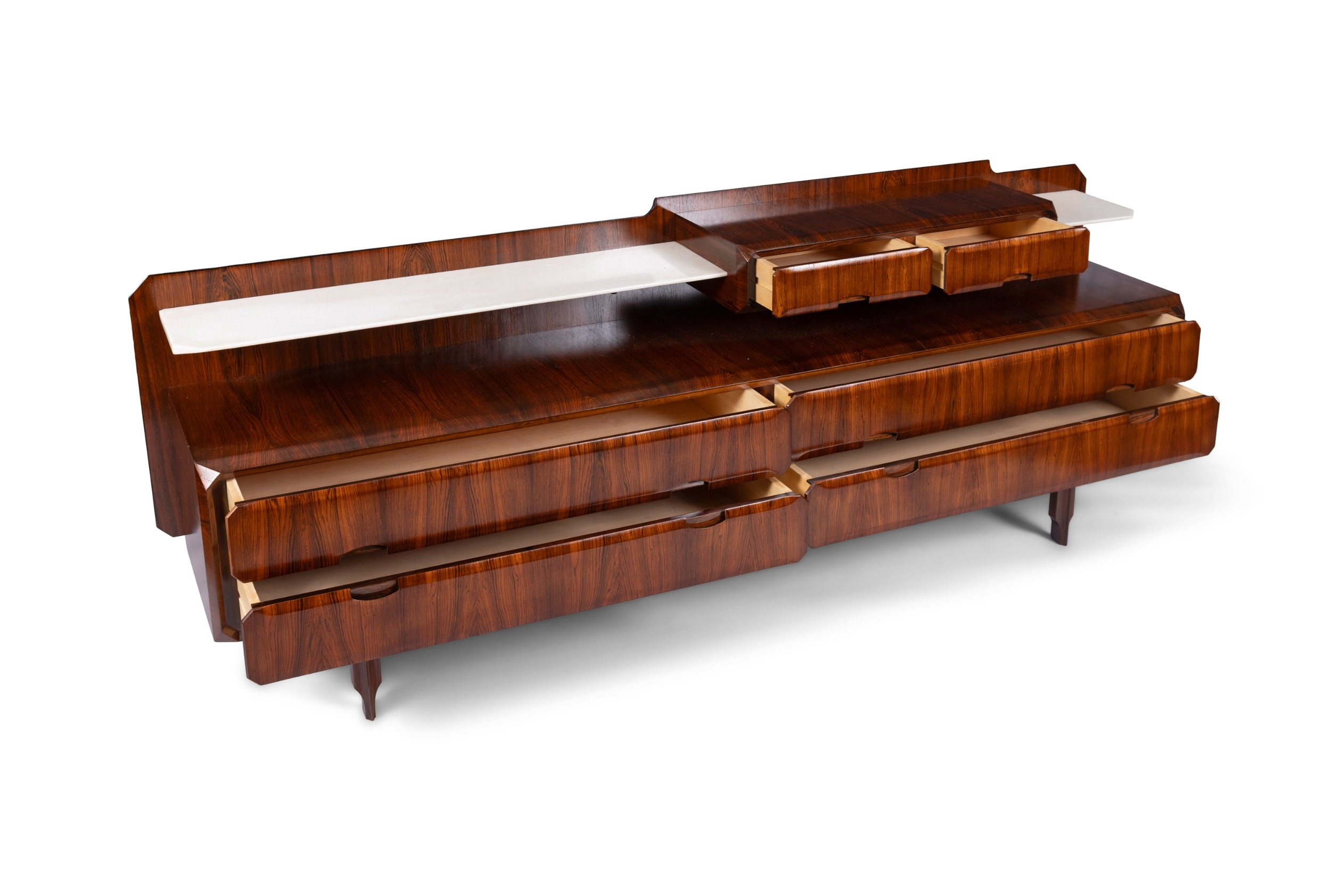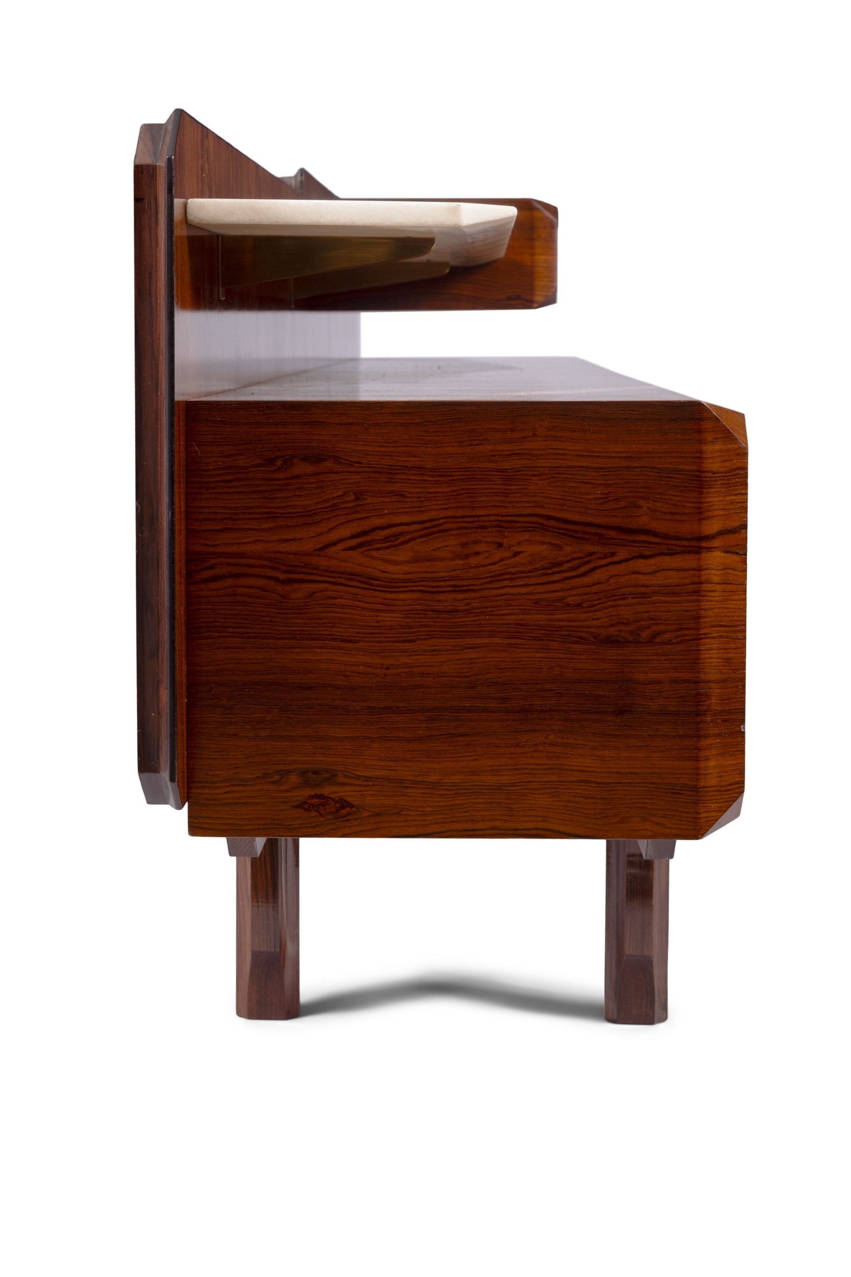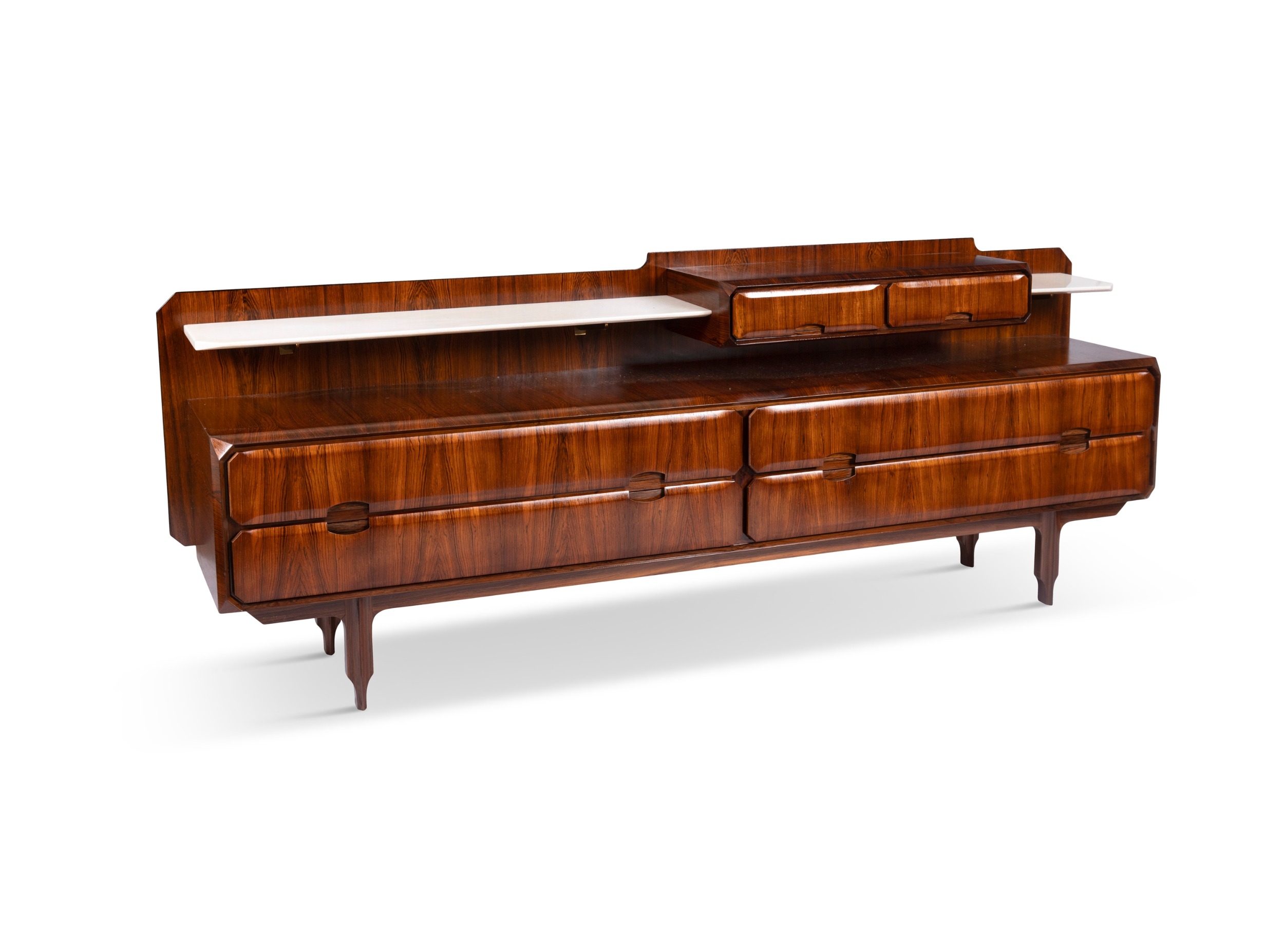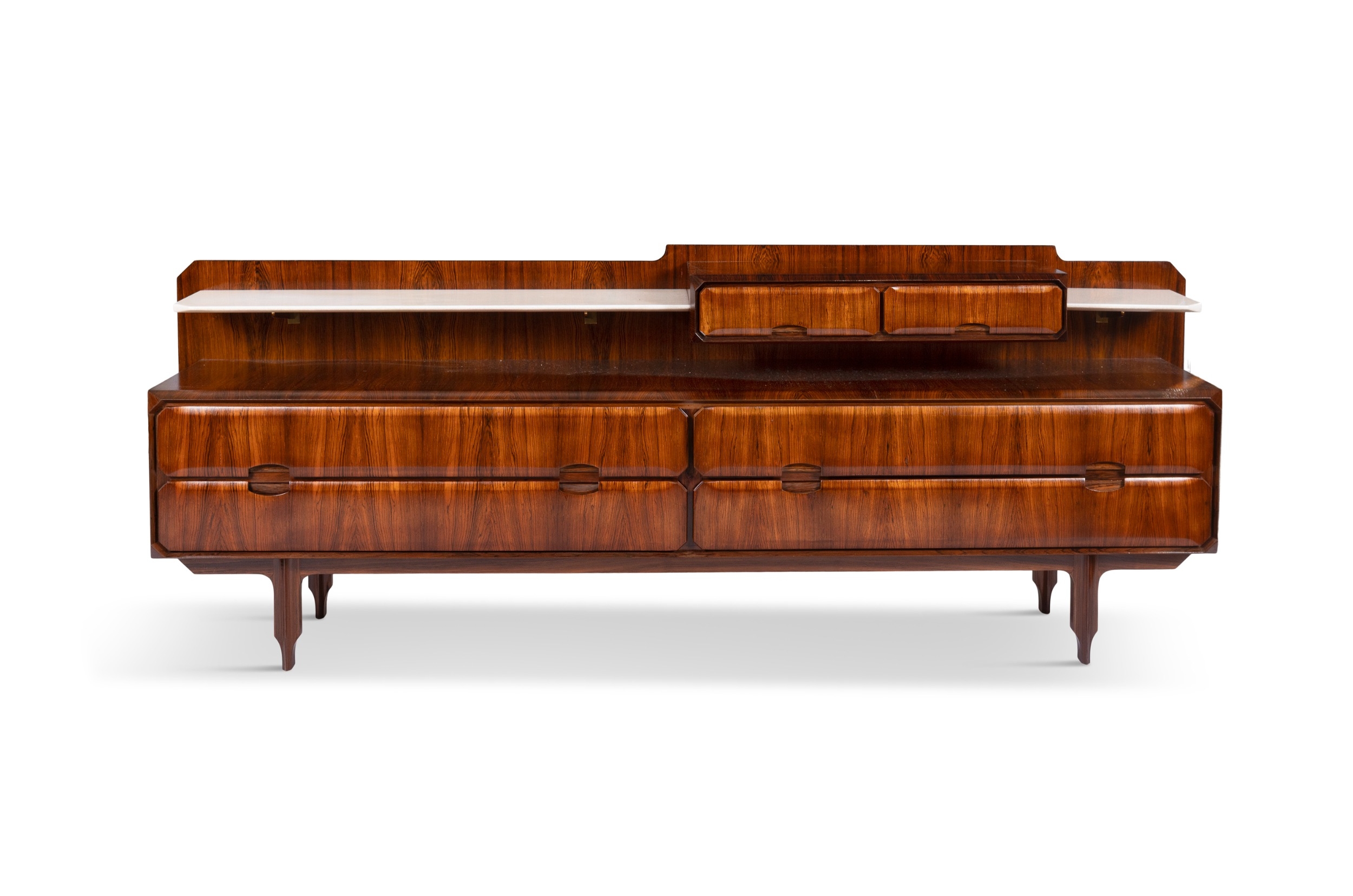MOBILI CANTÙ A rosewood sideboard by Mobili Cantù with six drawers and two marble shelves. With maker's stamp. Italy, c.1960. 212 x 49 x 75cm (h)