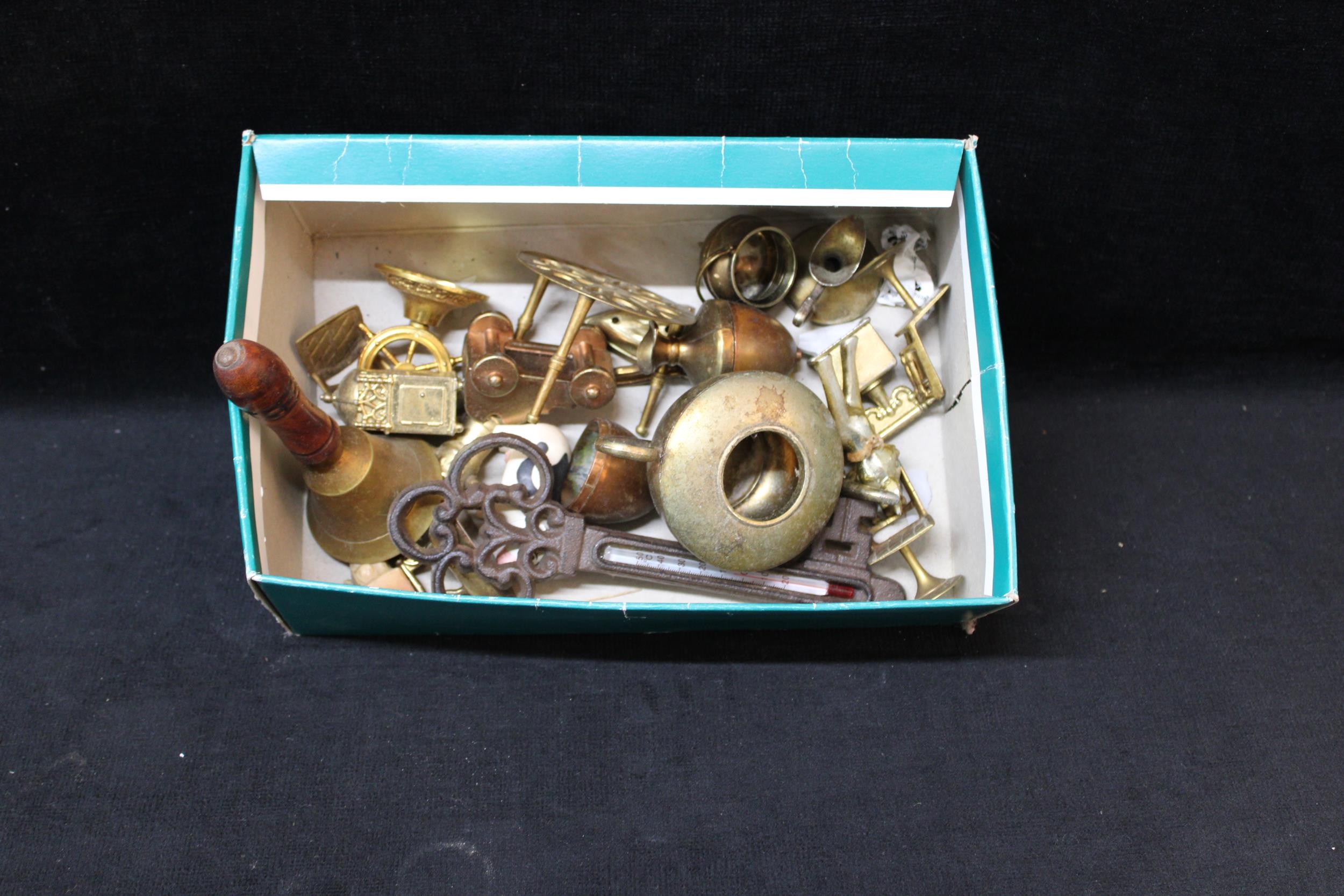 A small box of brassware