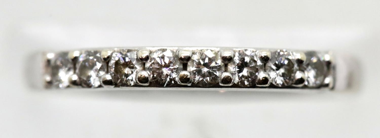 9ct white gold diamond set half eternity ring, size J/K, 2.0g. P&P Group 1 (£14+VAT for the first lot and £1+VAT for subsequent lots)