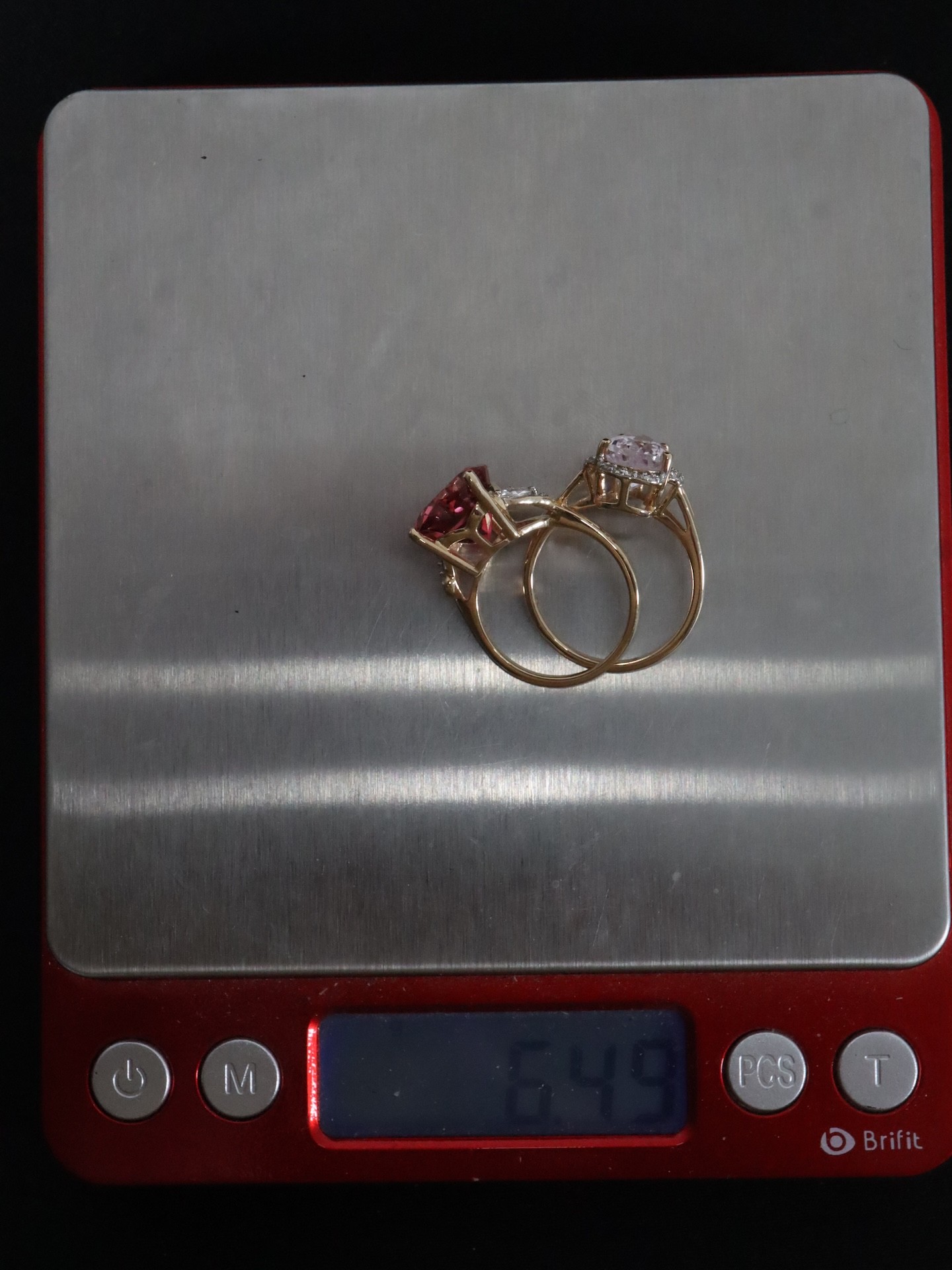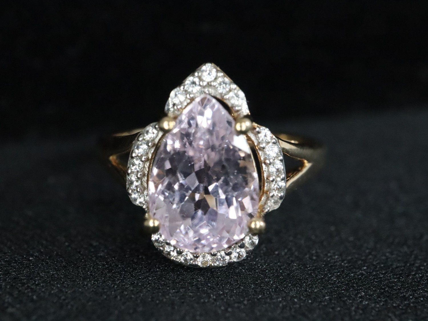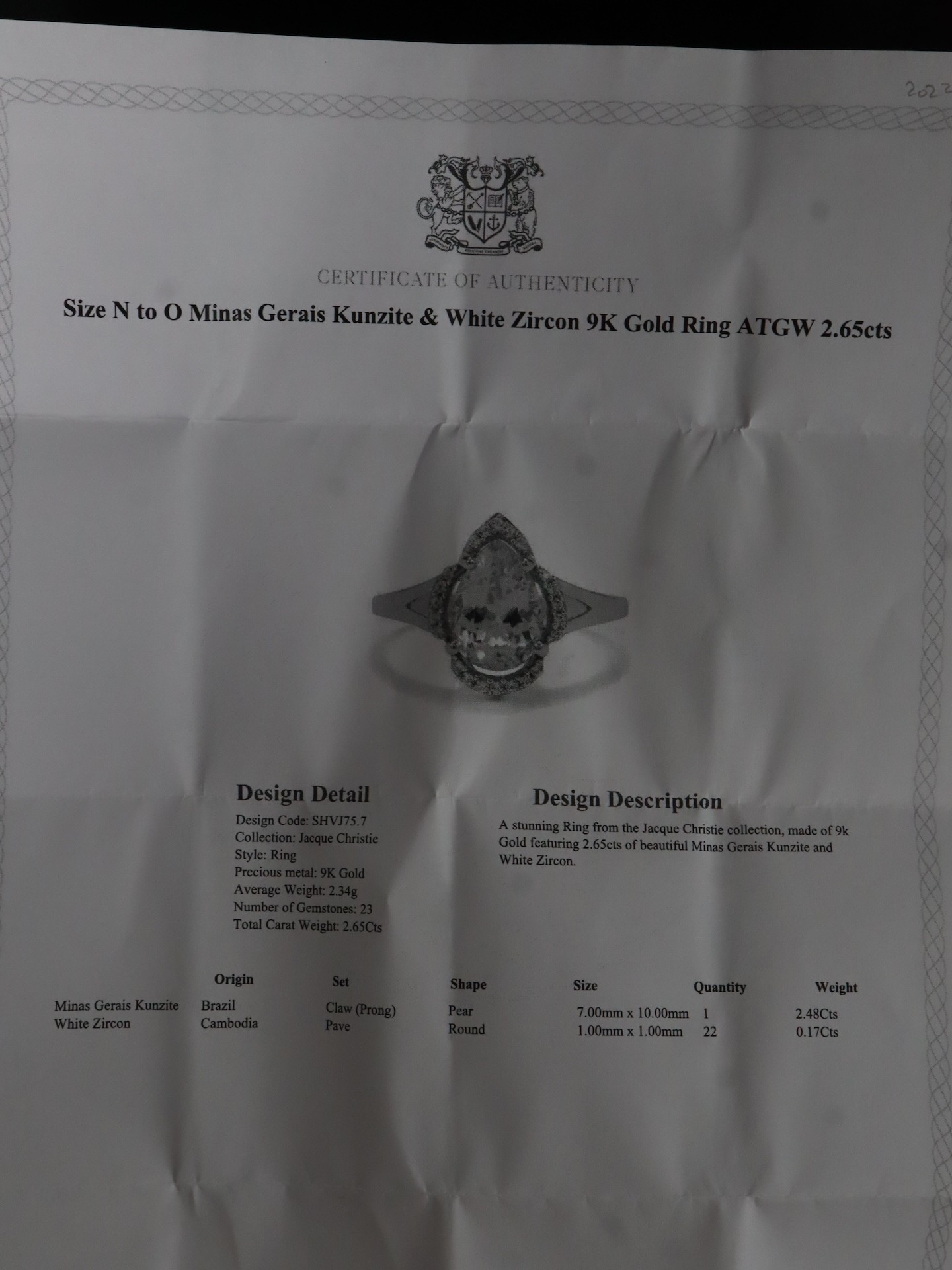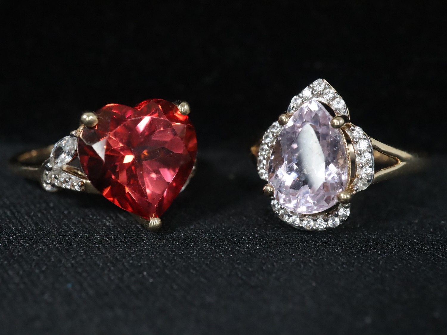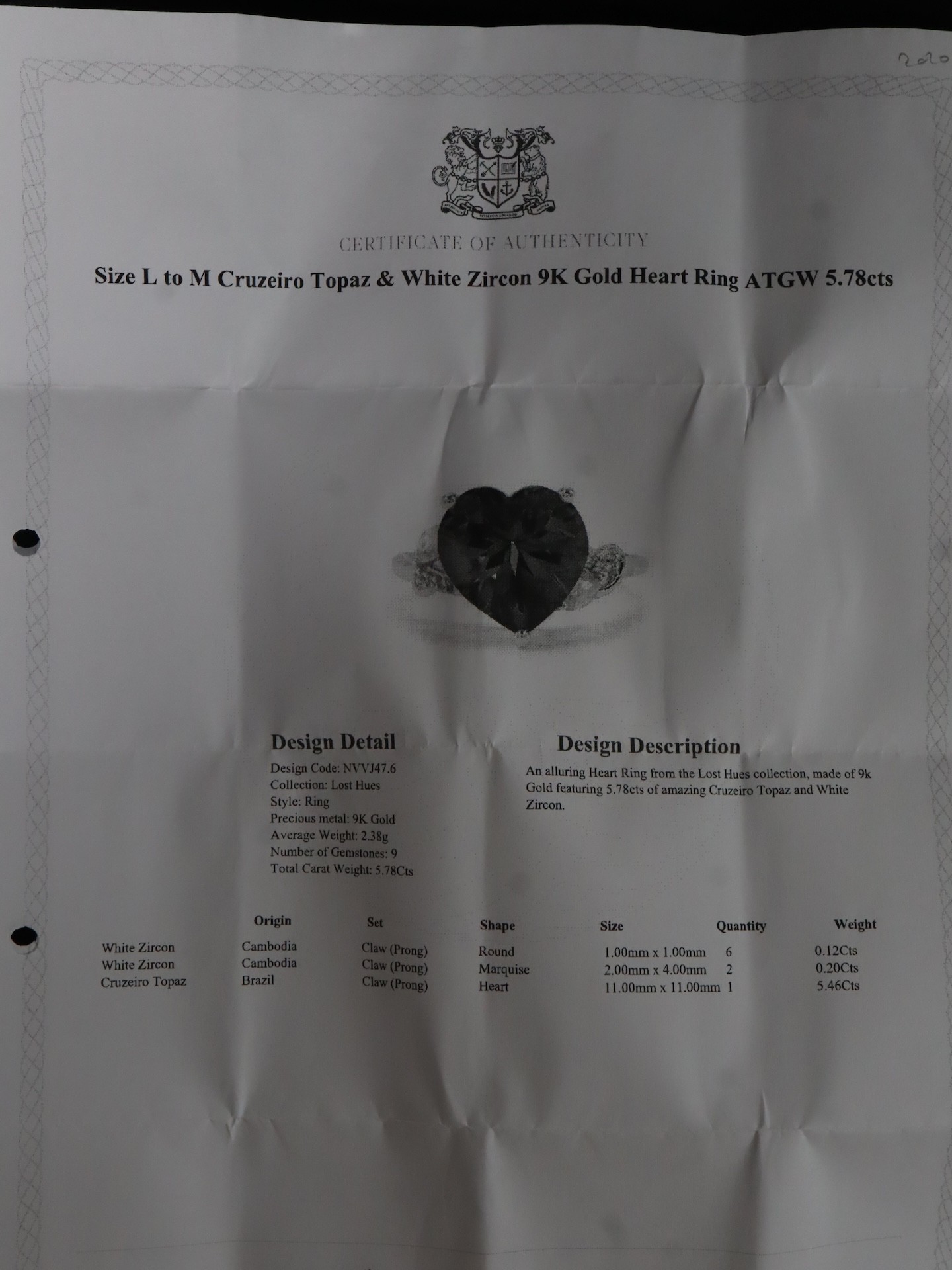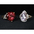 Minas Gerais Kunzite & White Zircon 9K Gold Ring 2.65cts Size N to O, Cruzeiro Topaz & White Zircon 9K Gold Heart Ring 5.78cts Size L to M -6.4g