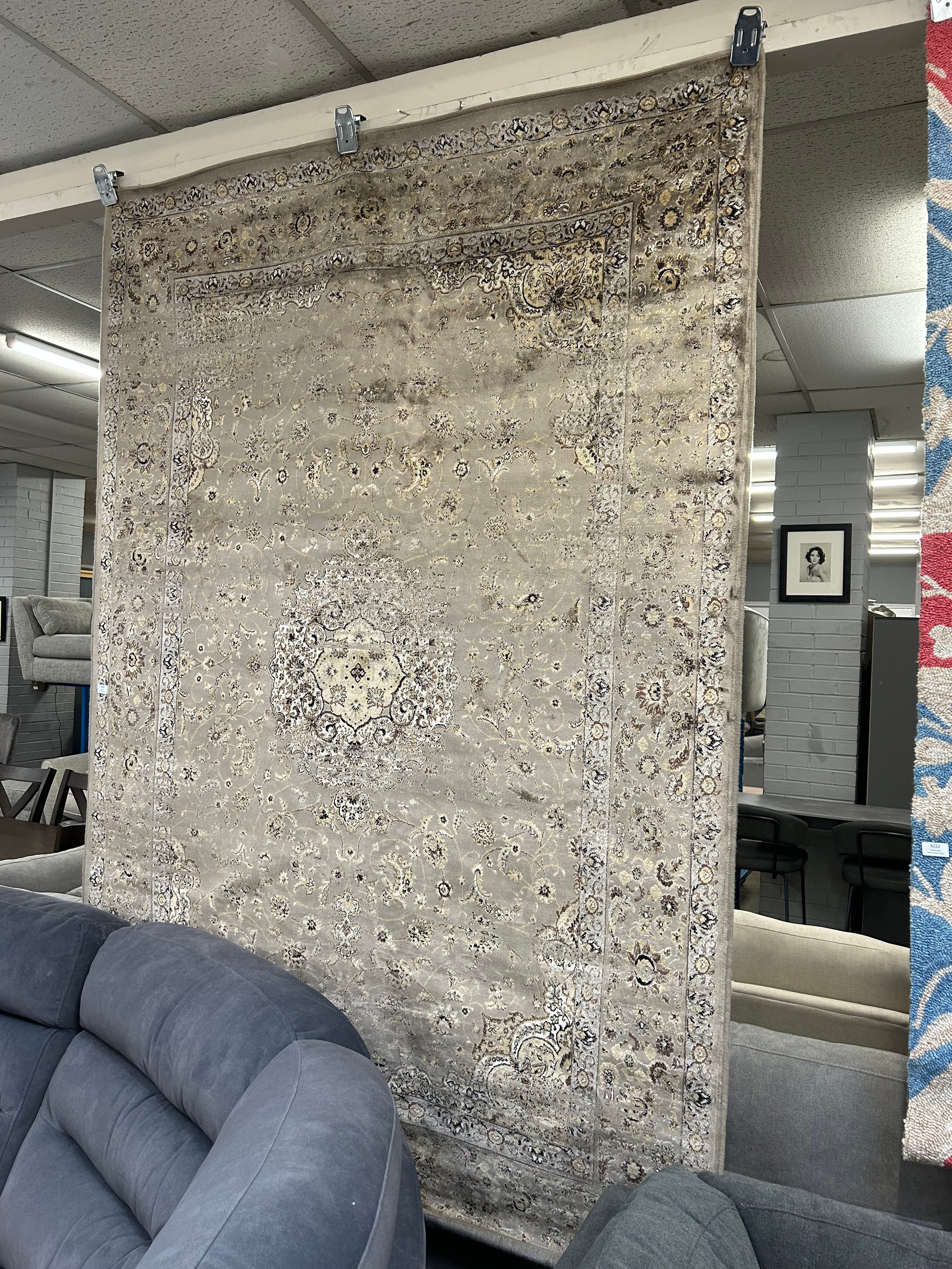 A grey ground vintage look carpet with medallion design (150 x 225)