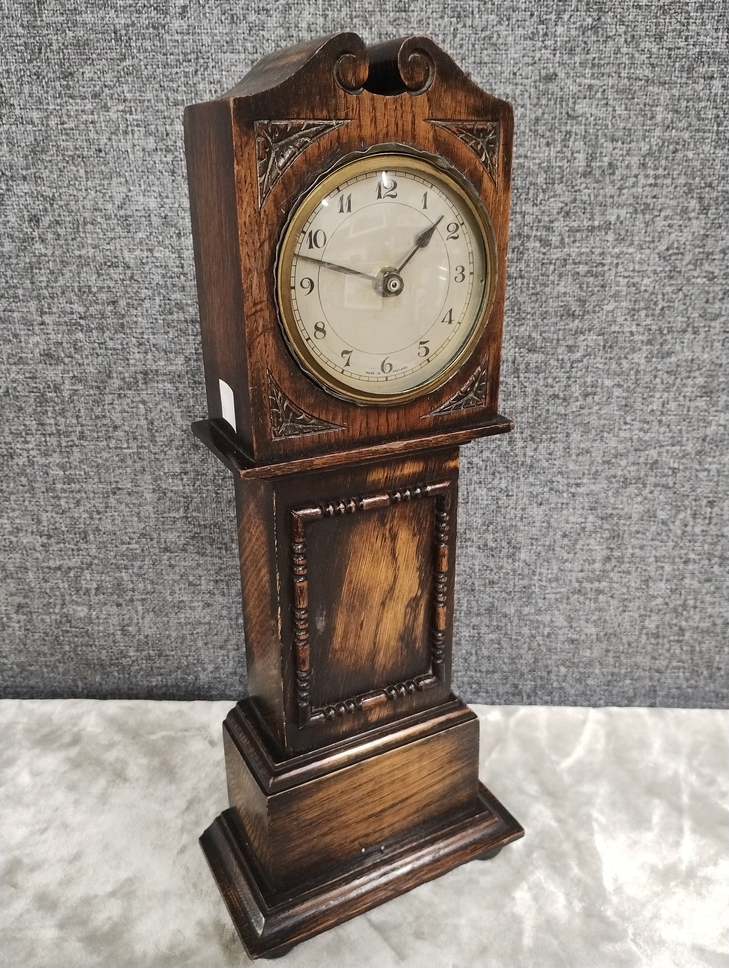 An oak miniture longcase clock