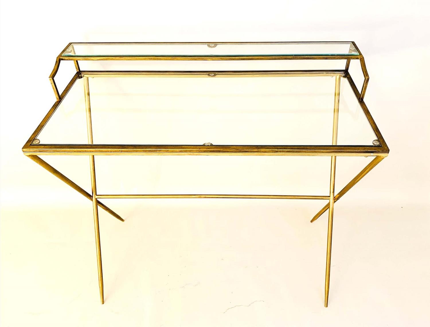 DESK, 1960s French style, gilt metal and glass, 87cm x 95cm x 42cm.