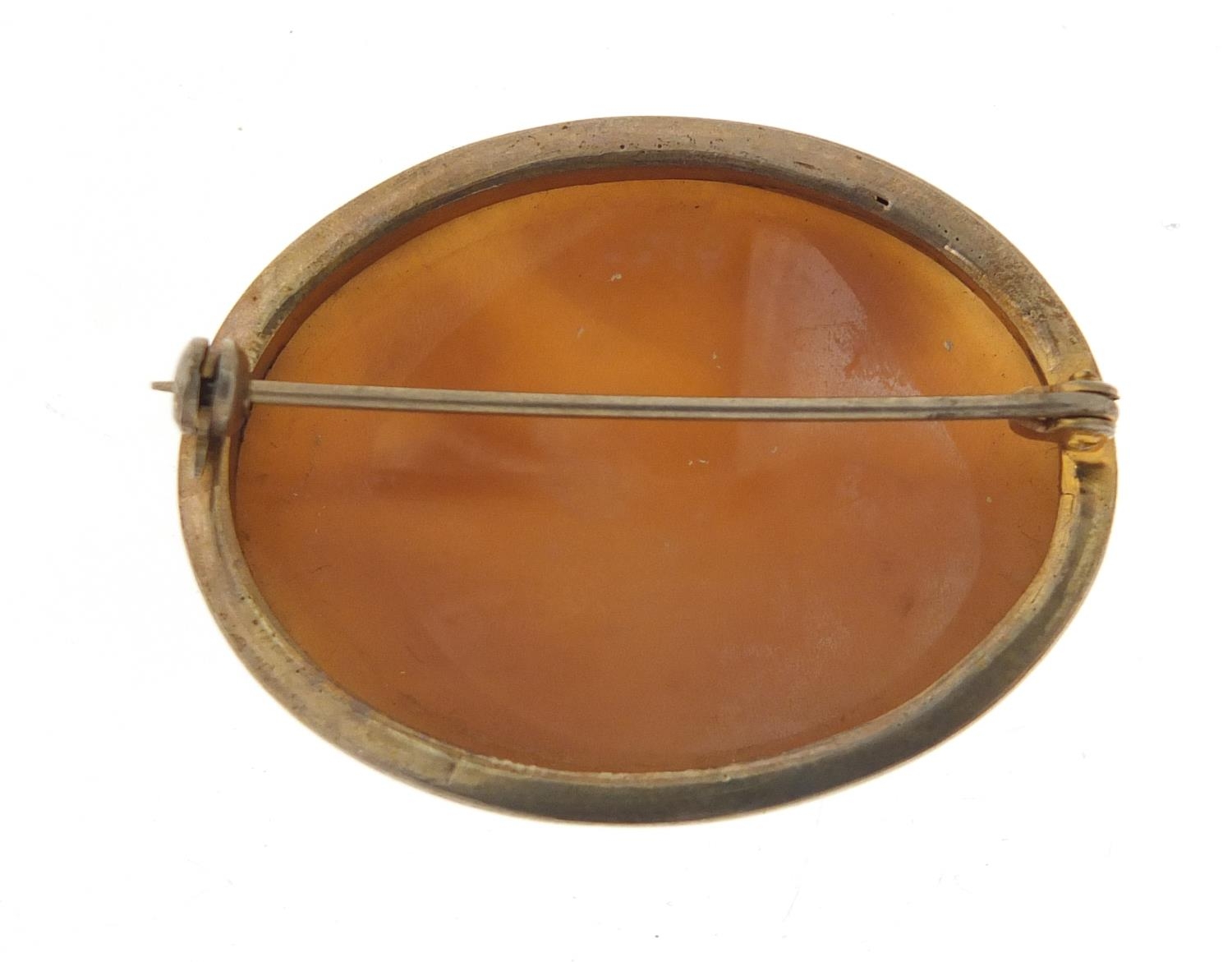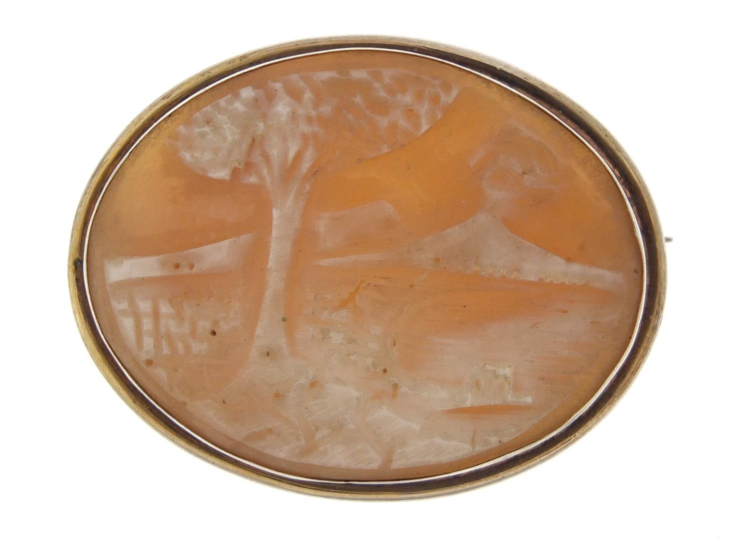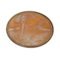 Cameo brooch depicting Mount Fuji? with gilt metal mount, 3.5cm in length