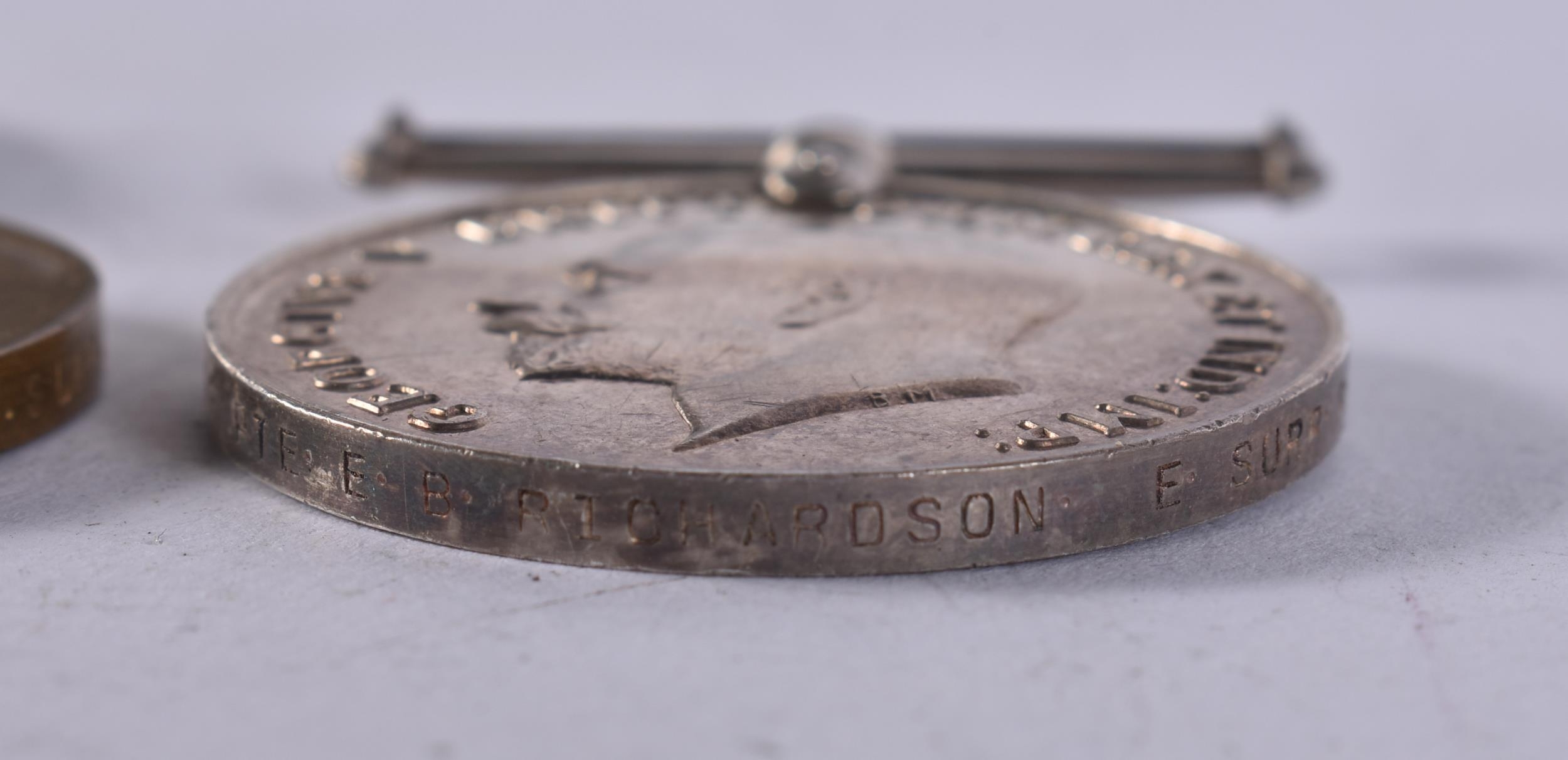 WW1 Medal Pair Named 35811 Pte E.B Richardson E. Surrey Regt. (2)