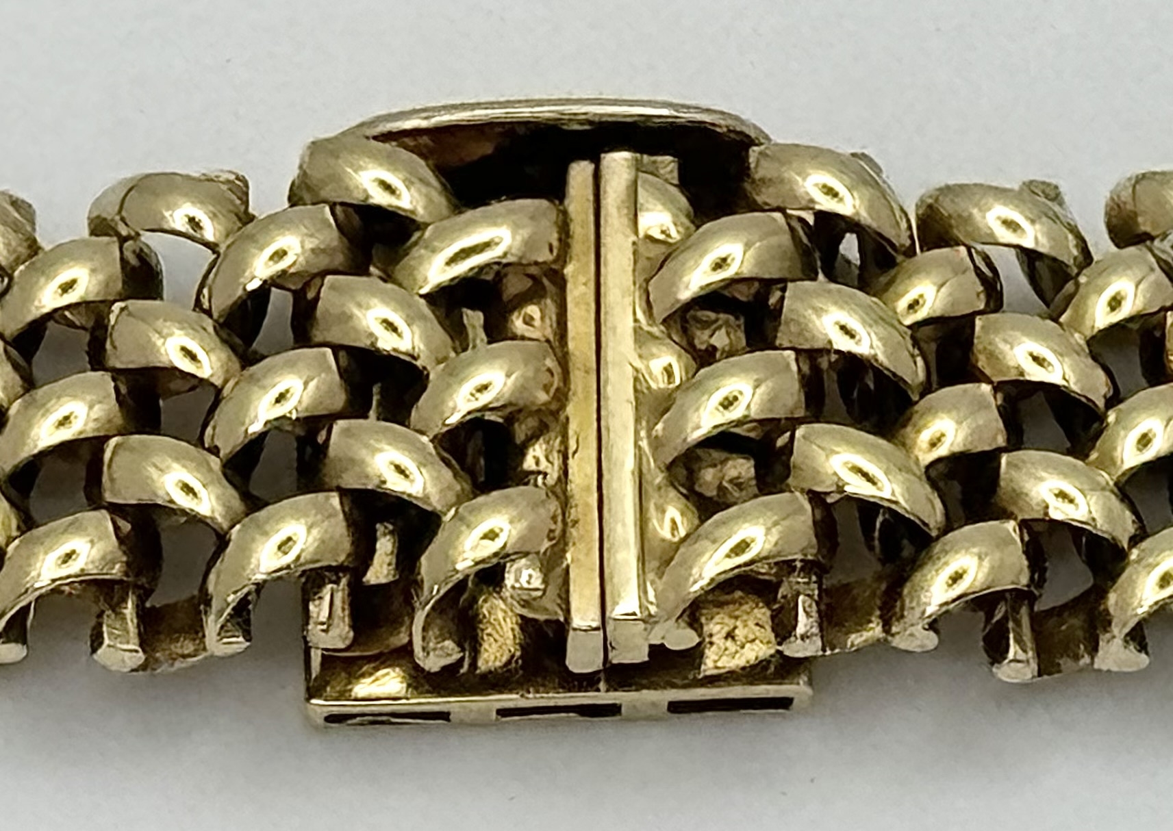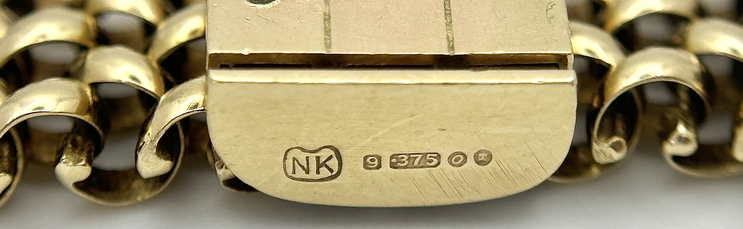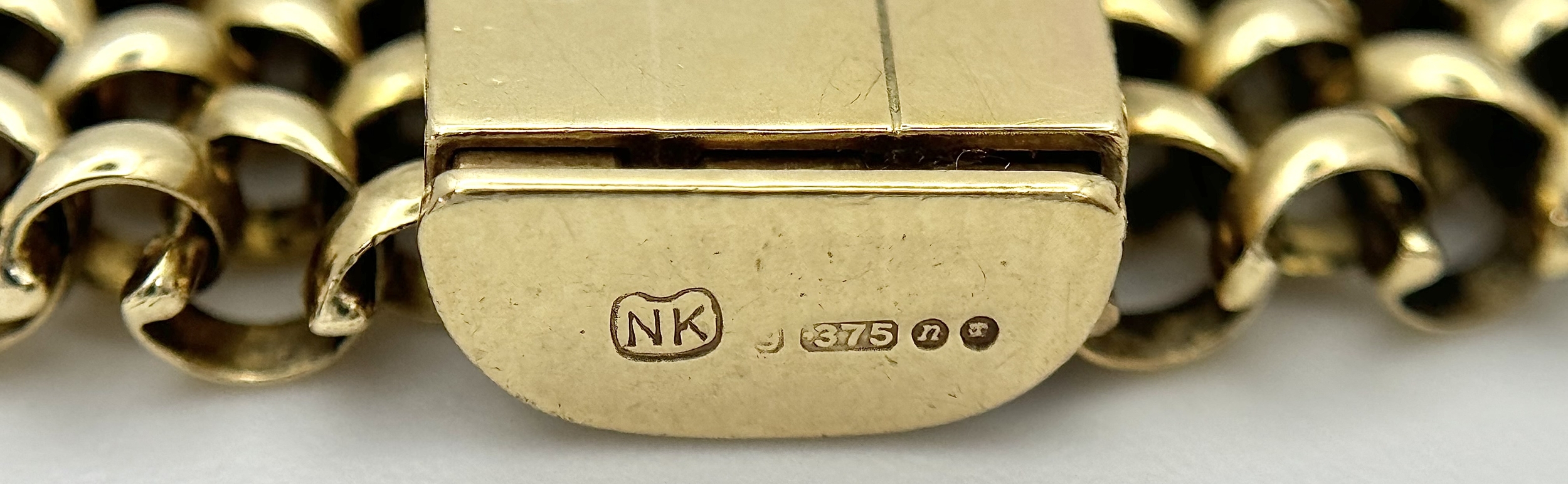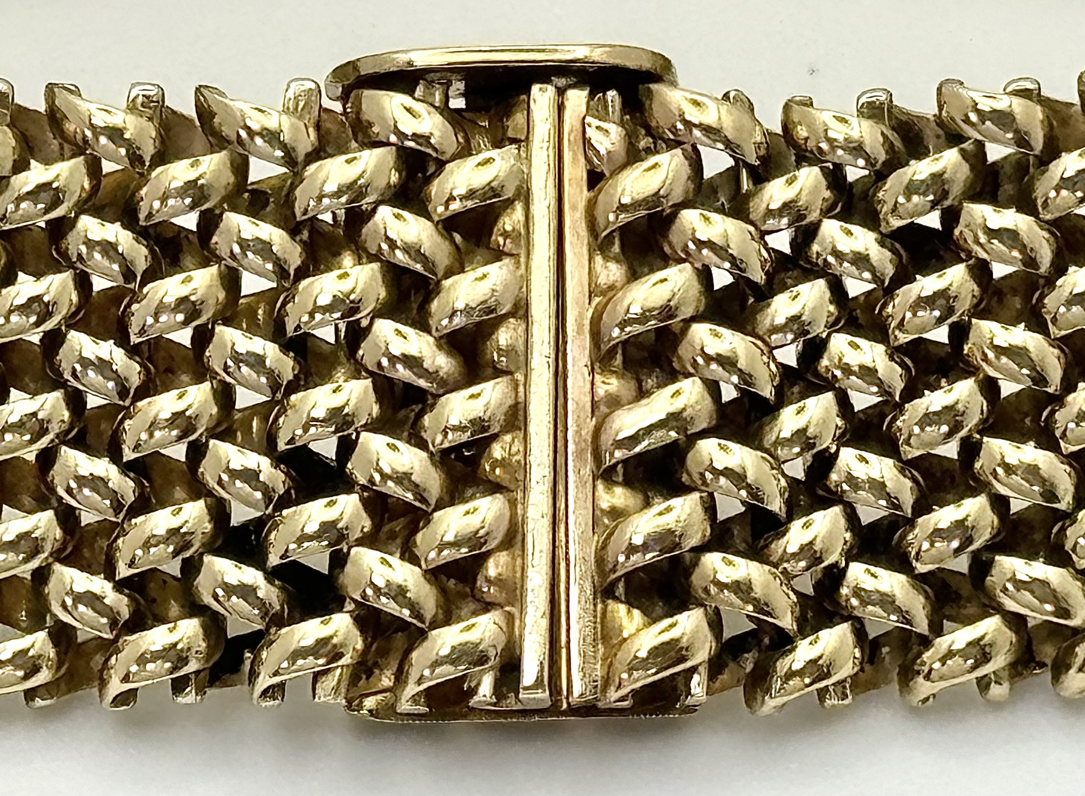 A Glamourous Vintage 9K Yellow Gold Necklace and Bracelet Set. Intricate curved links create a stunning woven effect. Necklace - 11mm width, 42cm length - 43.5g. Bracelet - 17mm width, 18.5cm length - 31g. Total weight - 74.5g. Both items have sturdy push clasps and are in very good wearable condition.