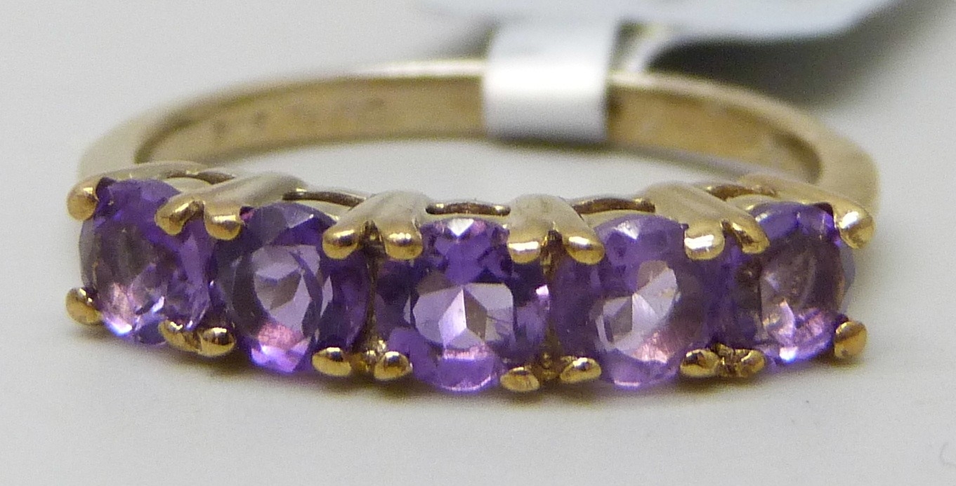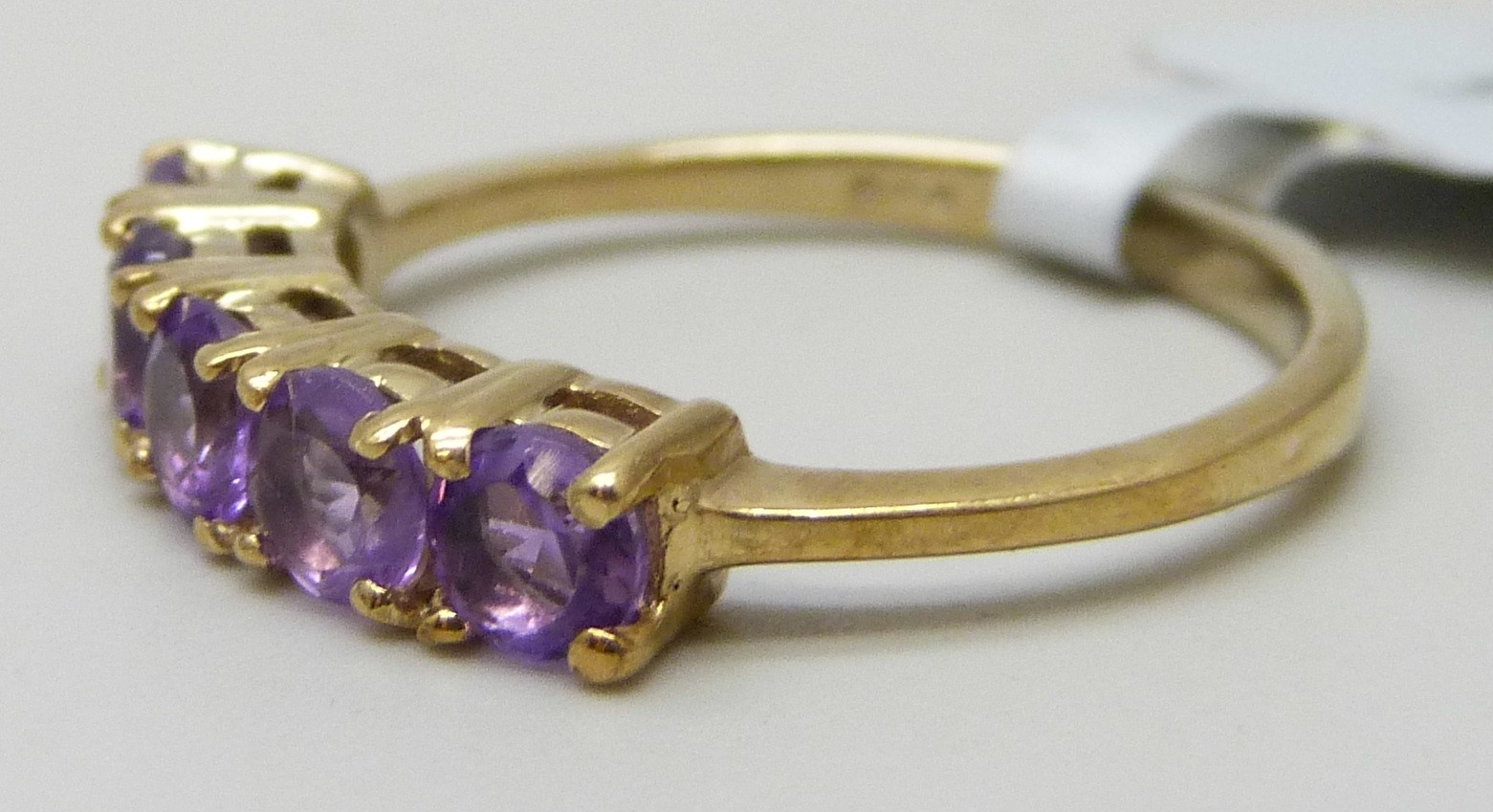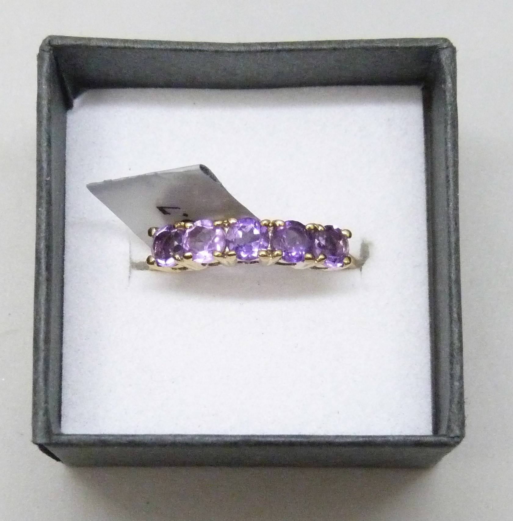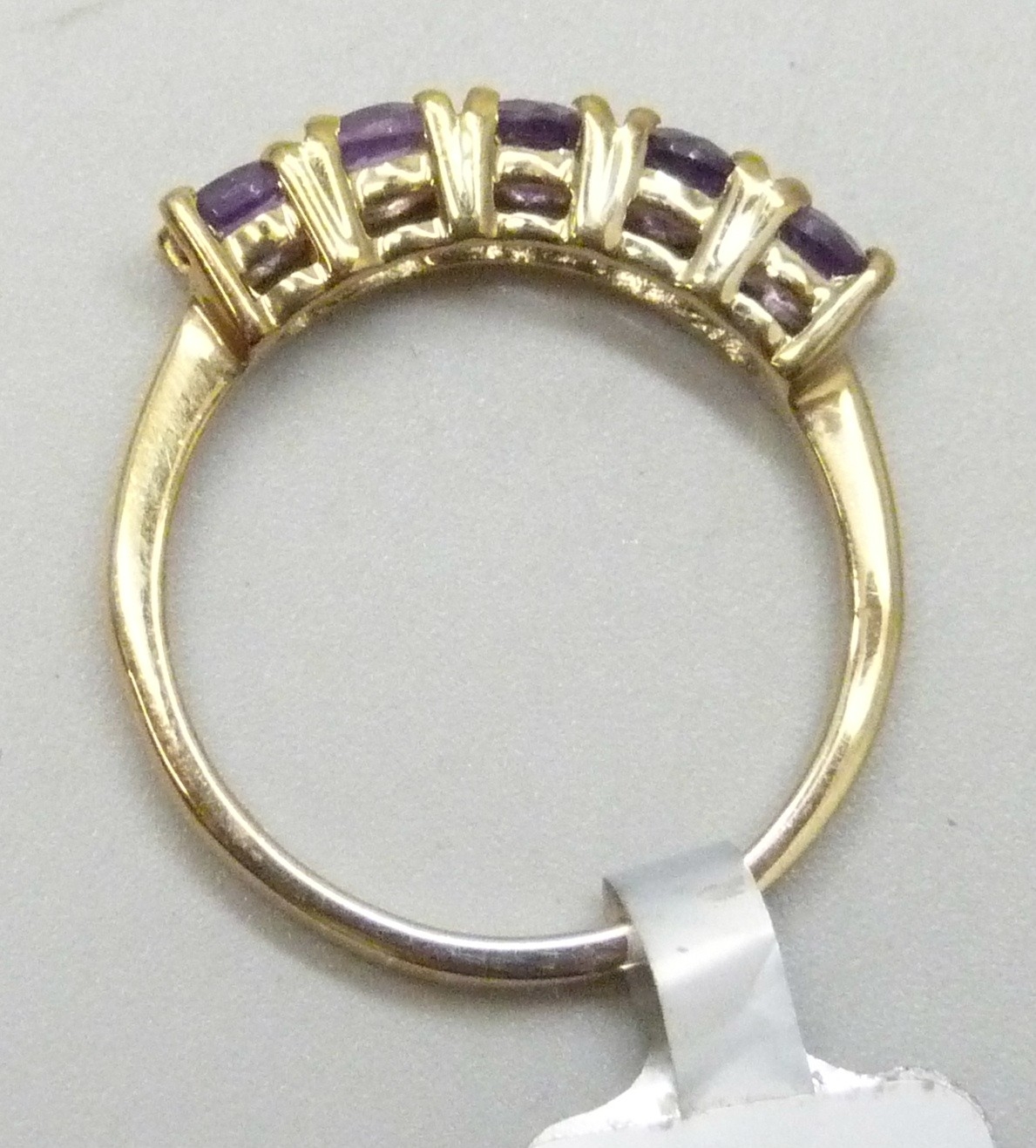 A TGGC silver gilt amethyst 5 stone ring, N