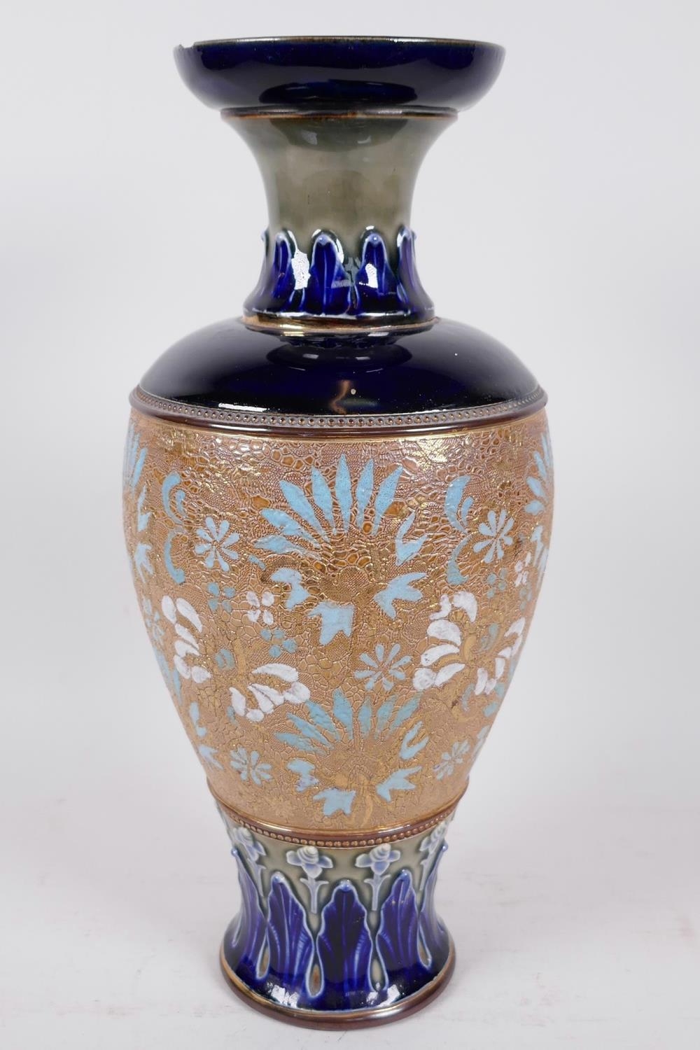 A Royal Doulton Slaters Patent vase, 13" high (chip to rim)