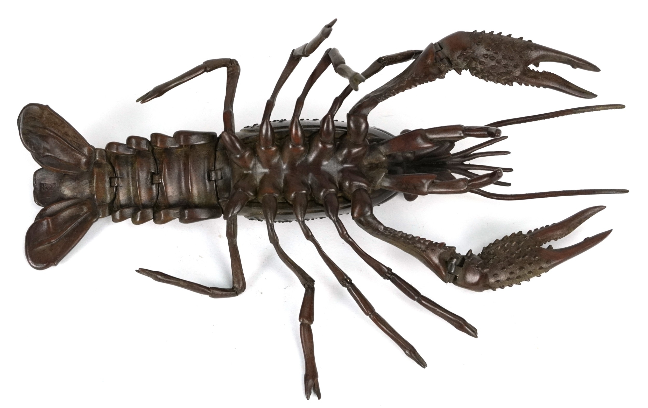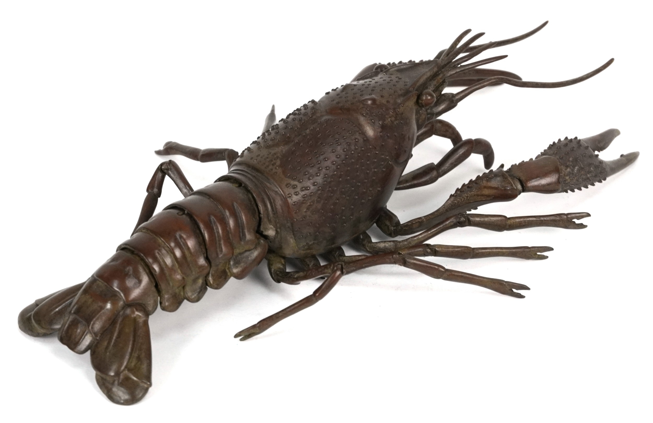 A Japanese patinated bronze crayfish with articulate limbs, 26cm in length.