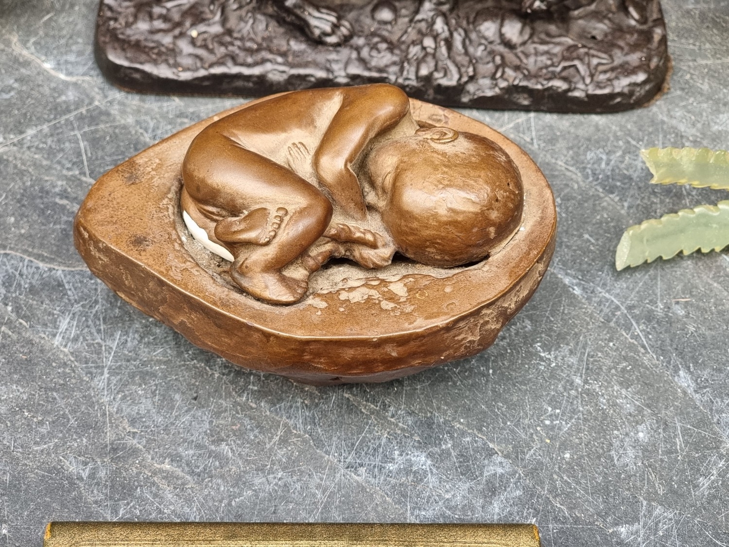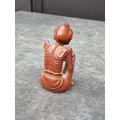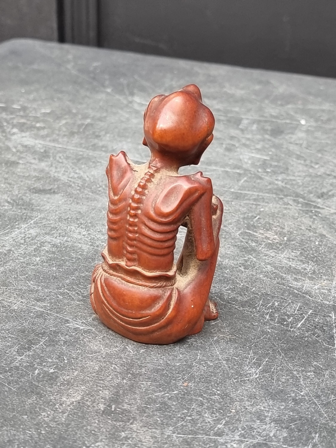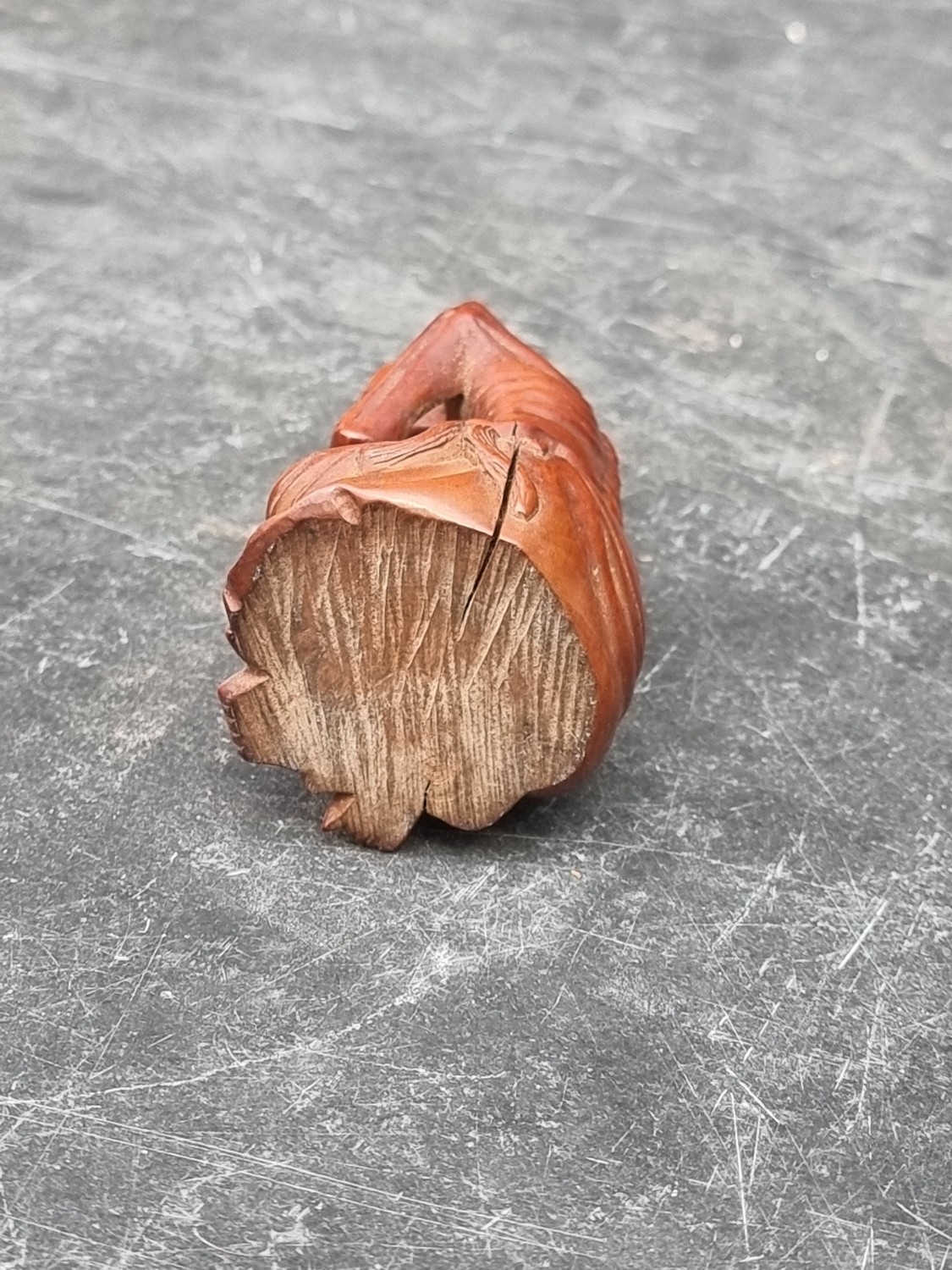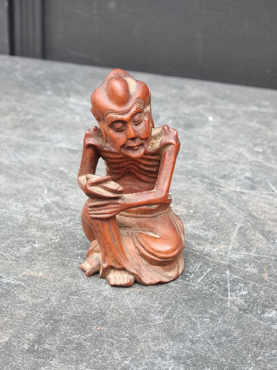 A mixed lot, to include: a cast iron hound, 21cm long; a Japanese carved wood figure, 10cm high; Chinese soapstone; and others, (s.d. to one). (8)