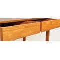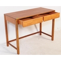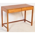 British Modern Design - A mid 20th century teak writing desk / side table. The desk having twin drawers over squared supports united by stretchers. Air Ministry style. Measures approx: 75x102x48cm