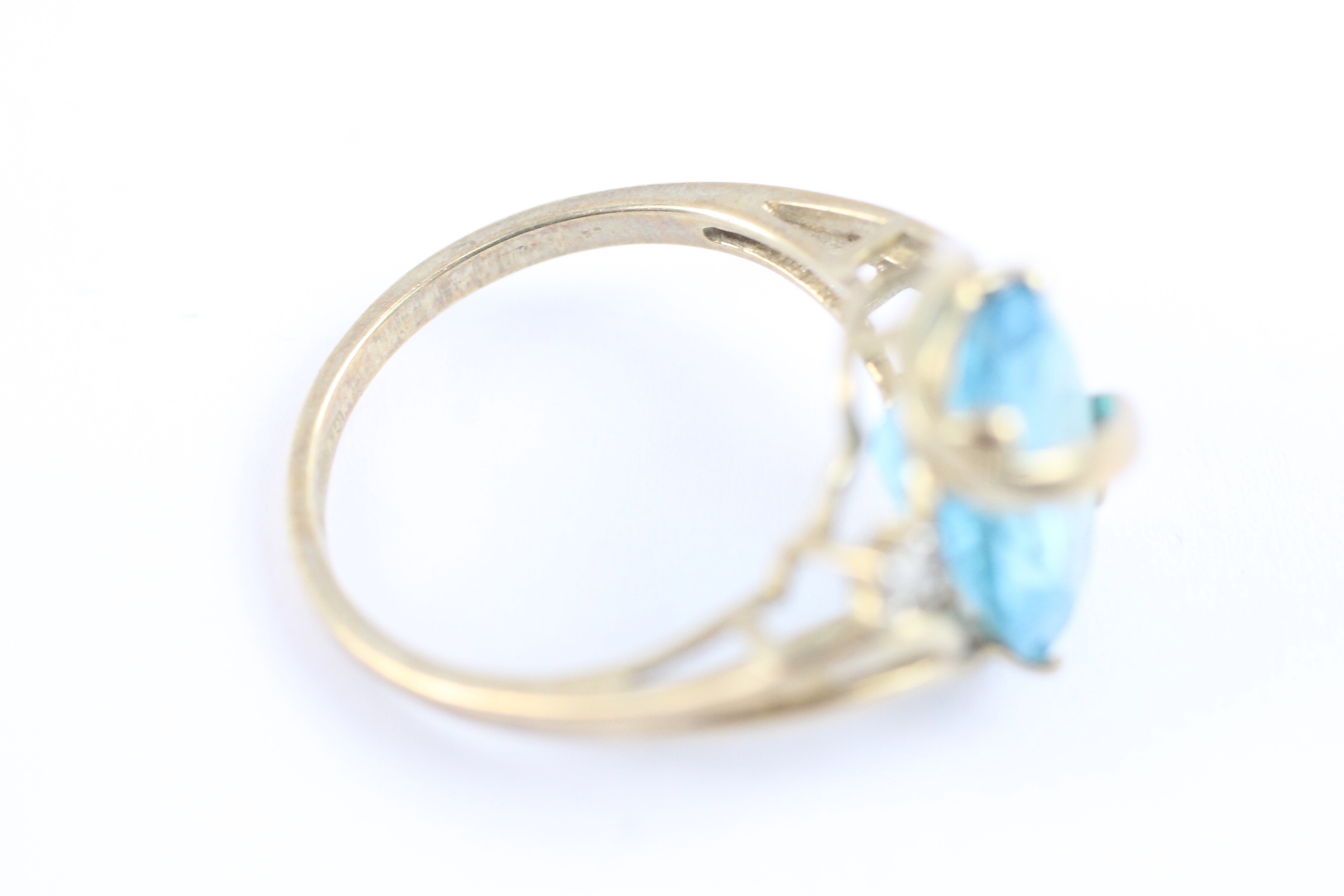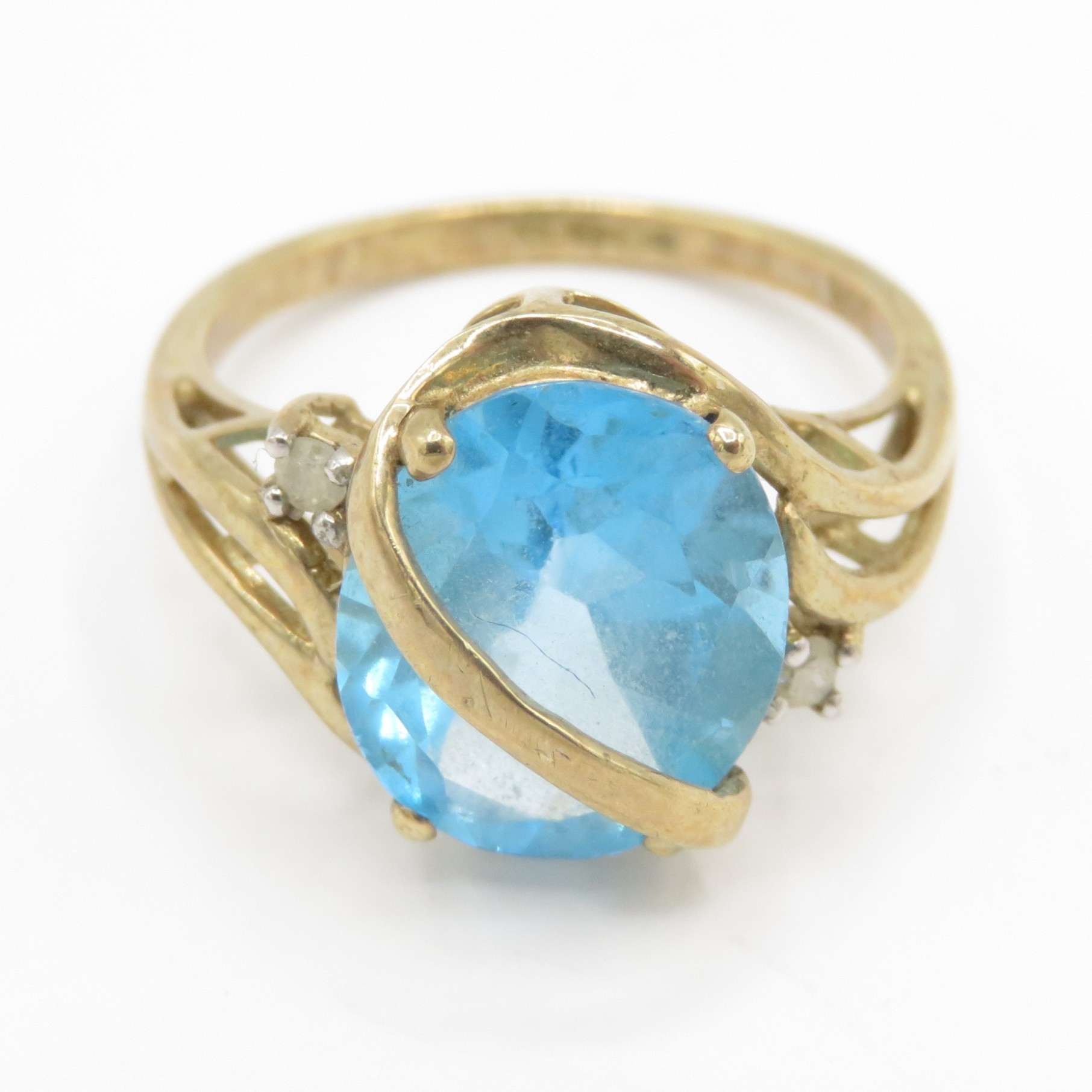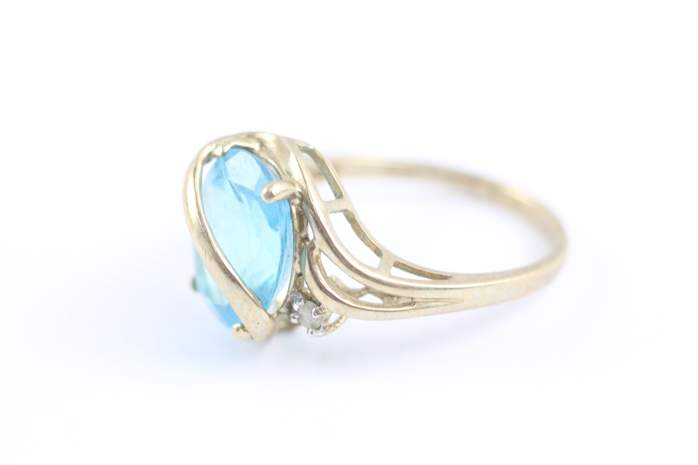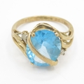 9ct gold blue topaz & diamond dress ring (3.5g) Size O 1/2