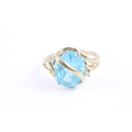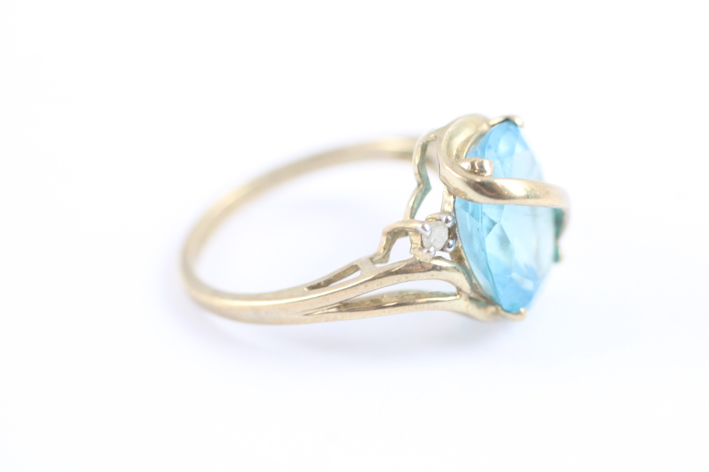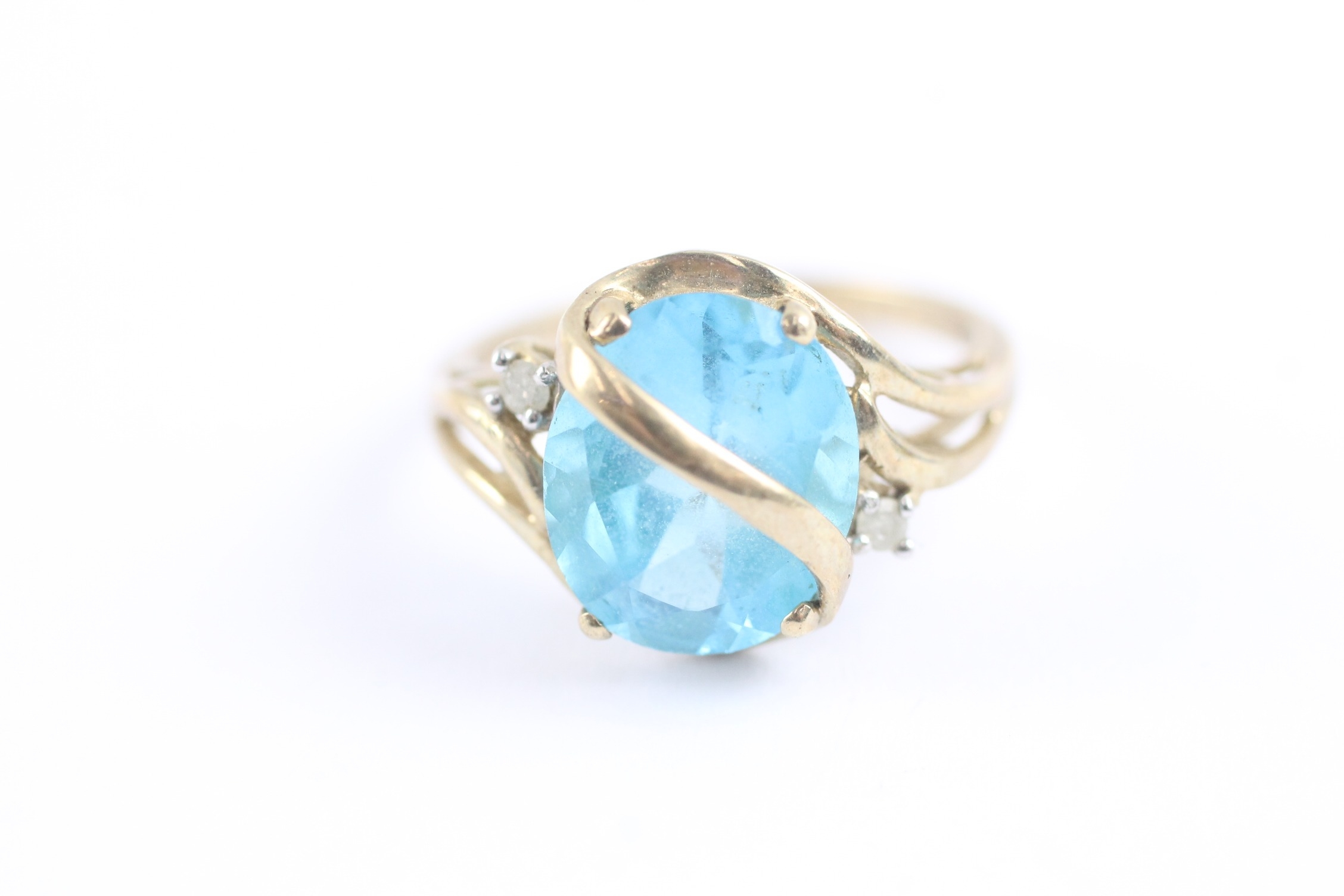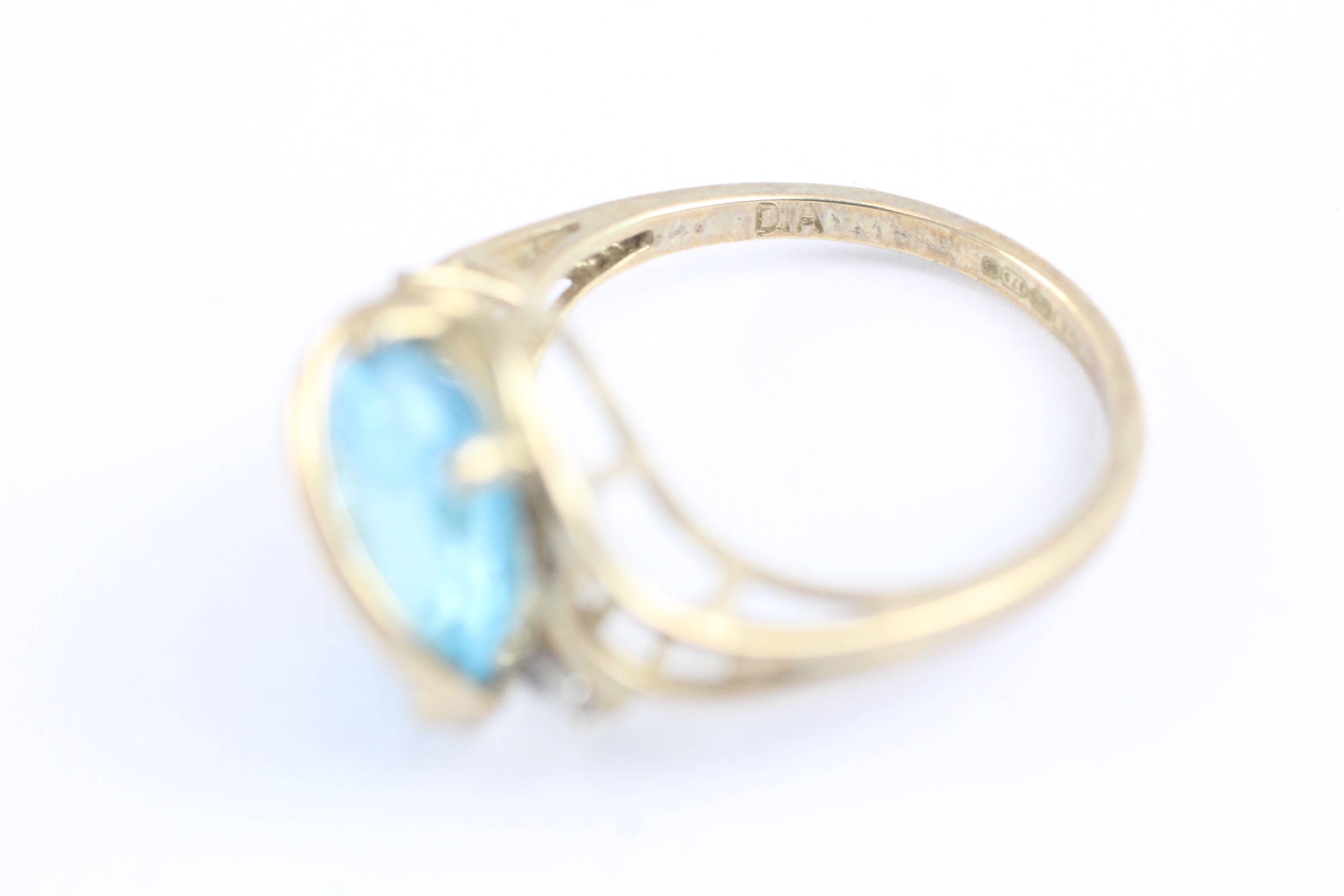9ct gold blue topaz & diamond dress ring (3.5g) Size O 1/2