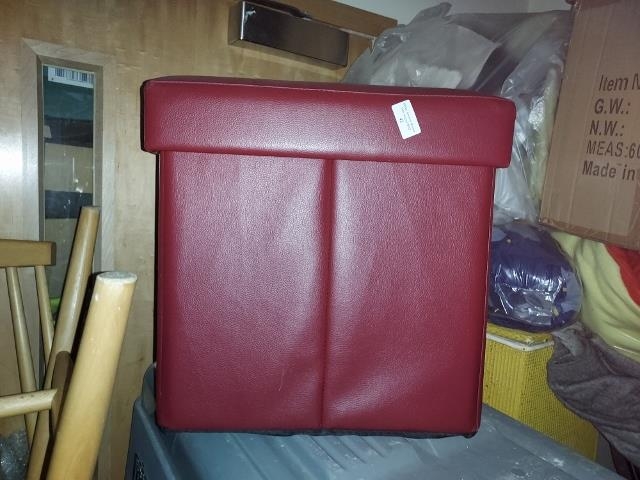 Red Leatherette Storage Stool
