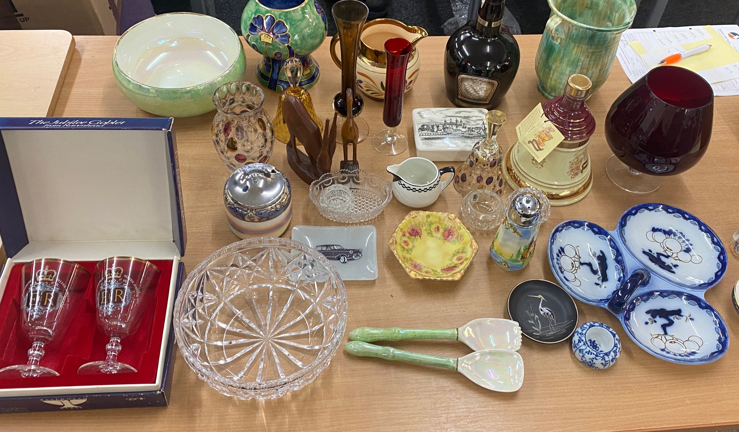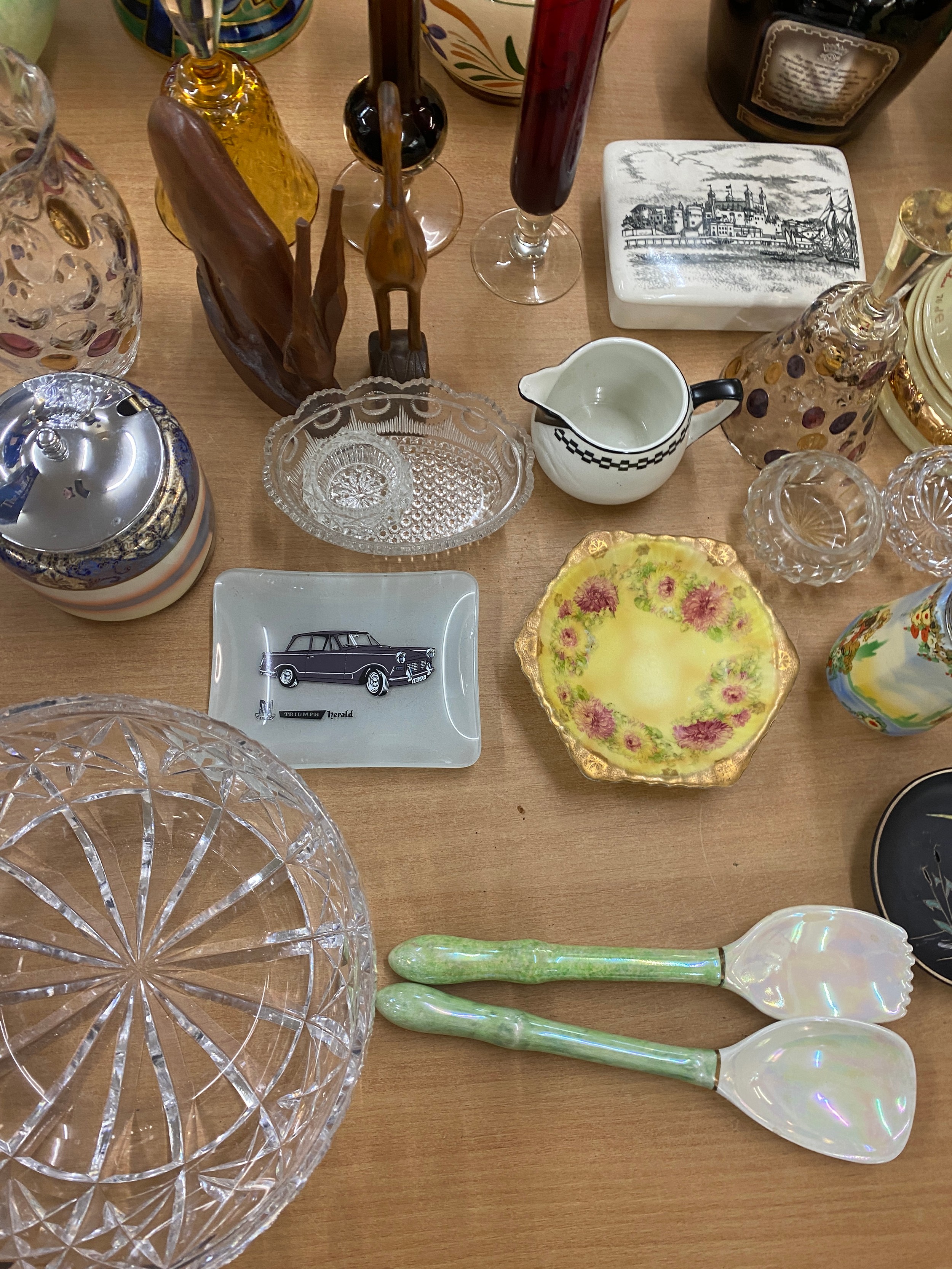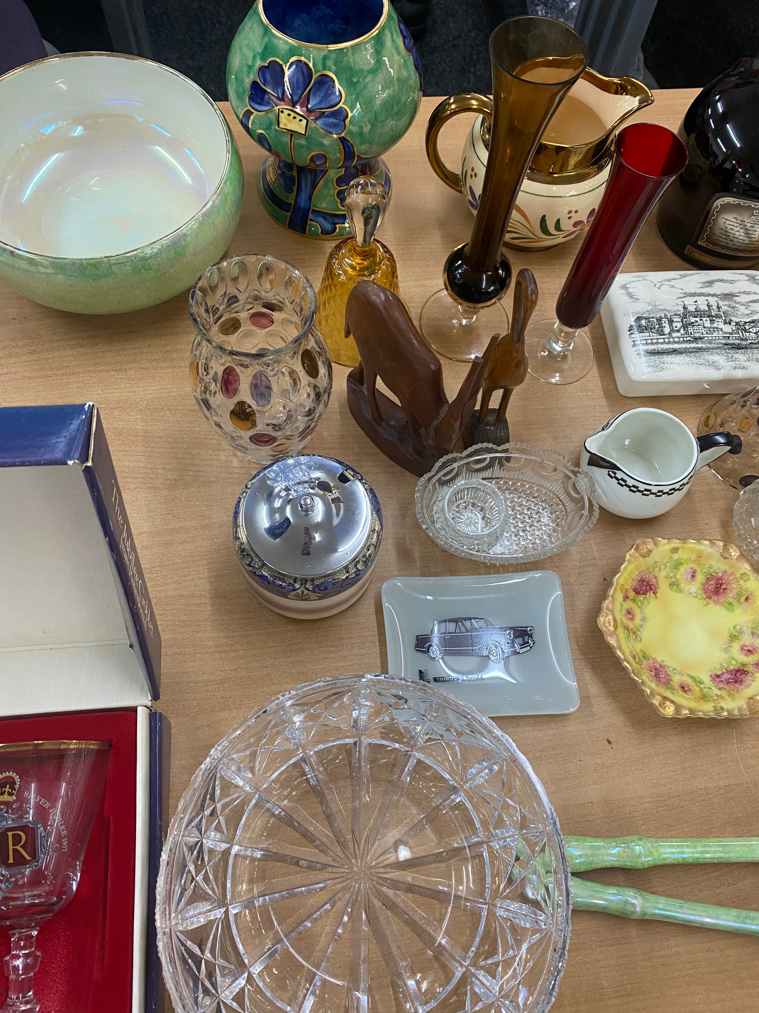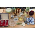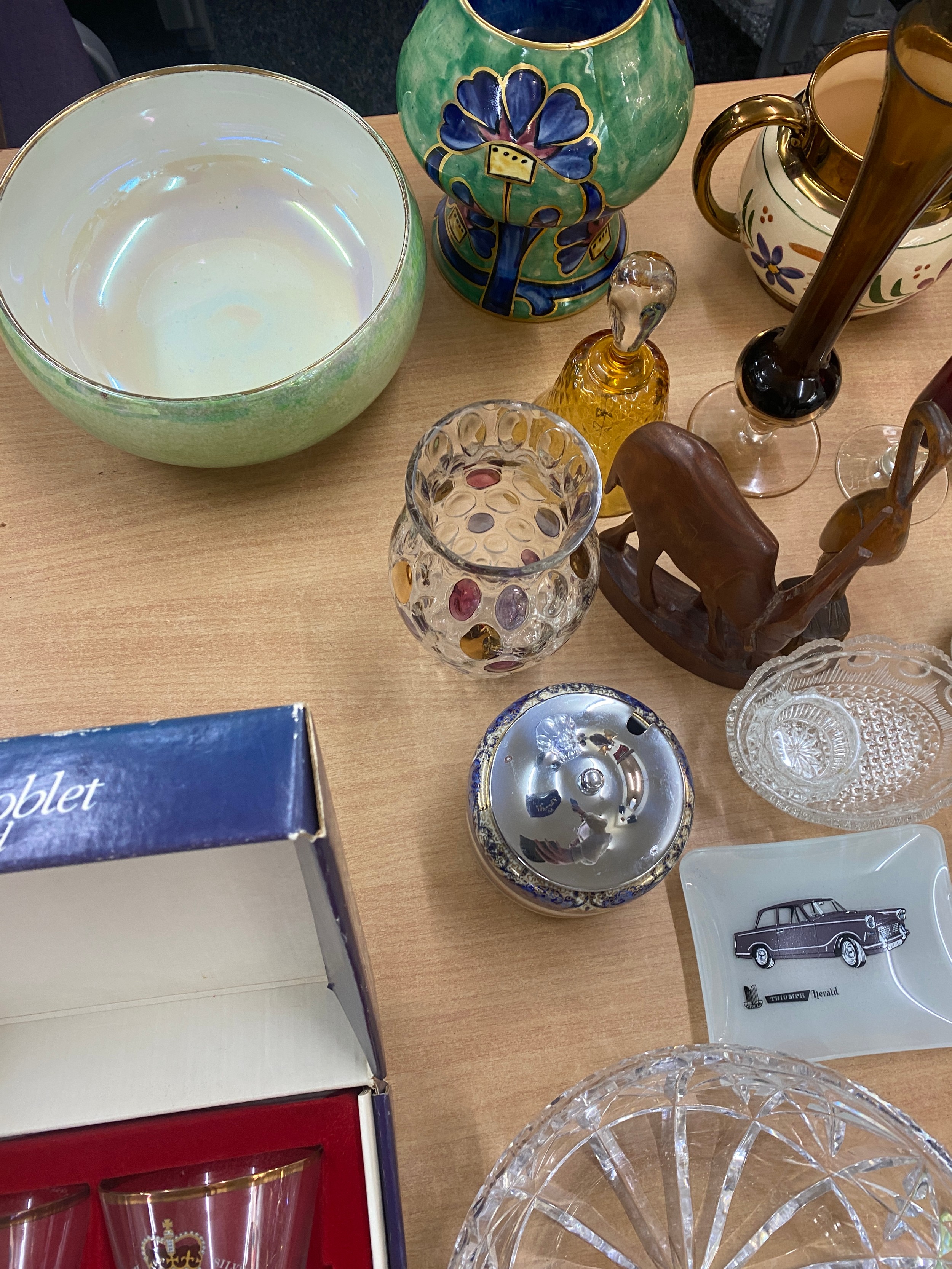 Large selection of miscellaneous items includes Vases, Glassware, carved wooden items etc