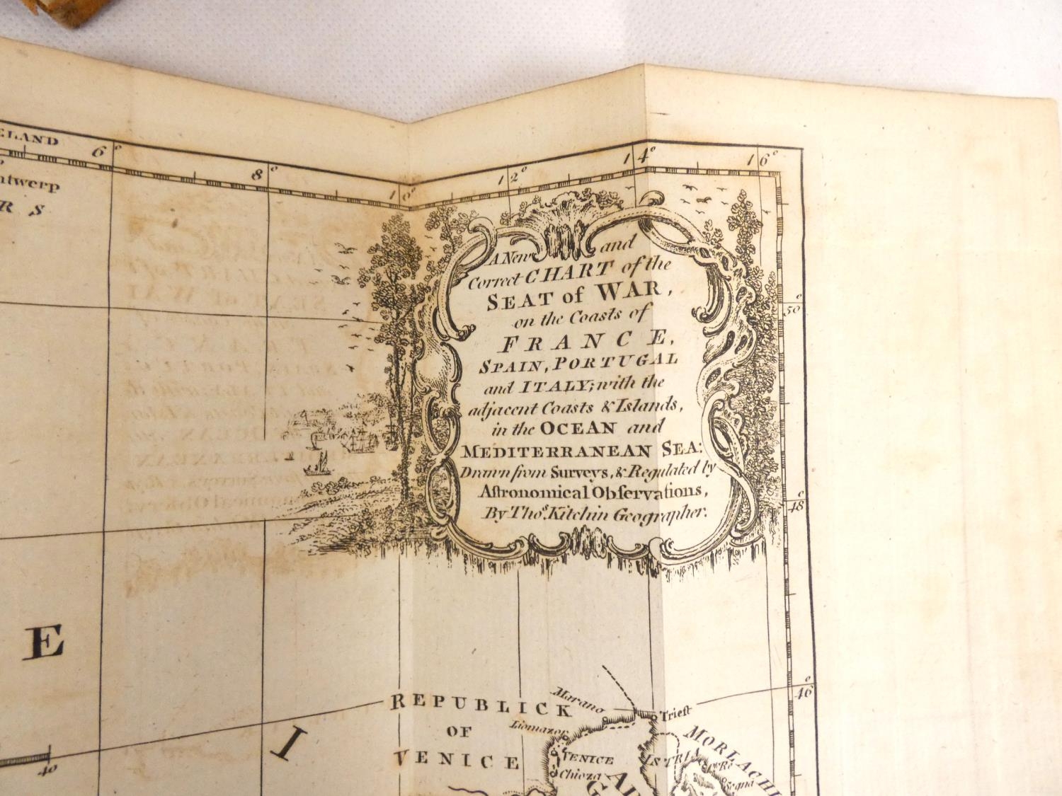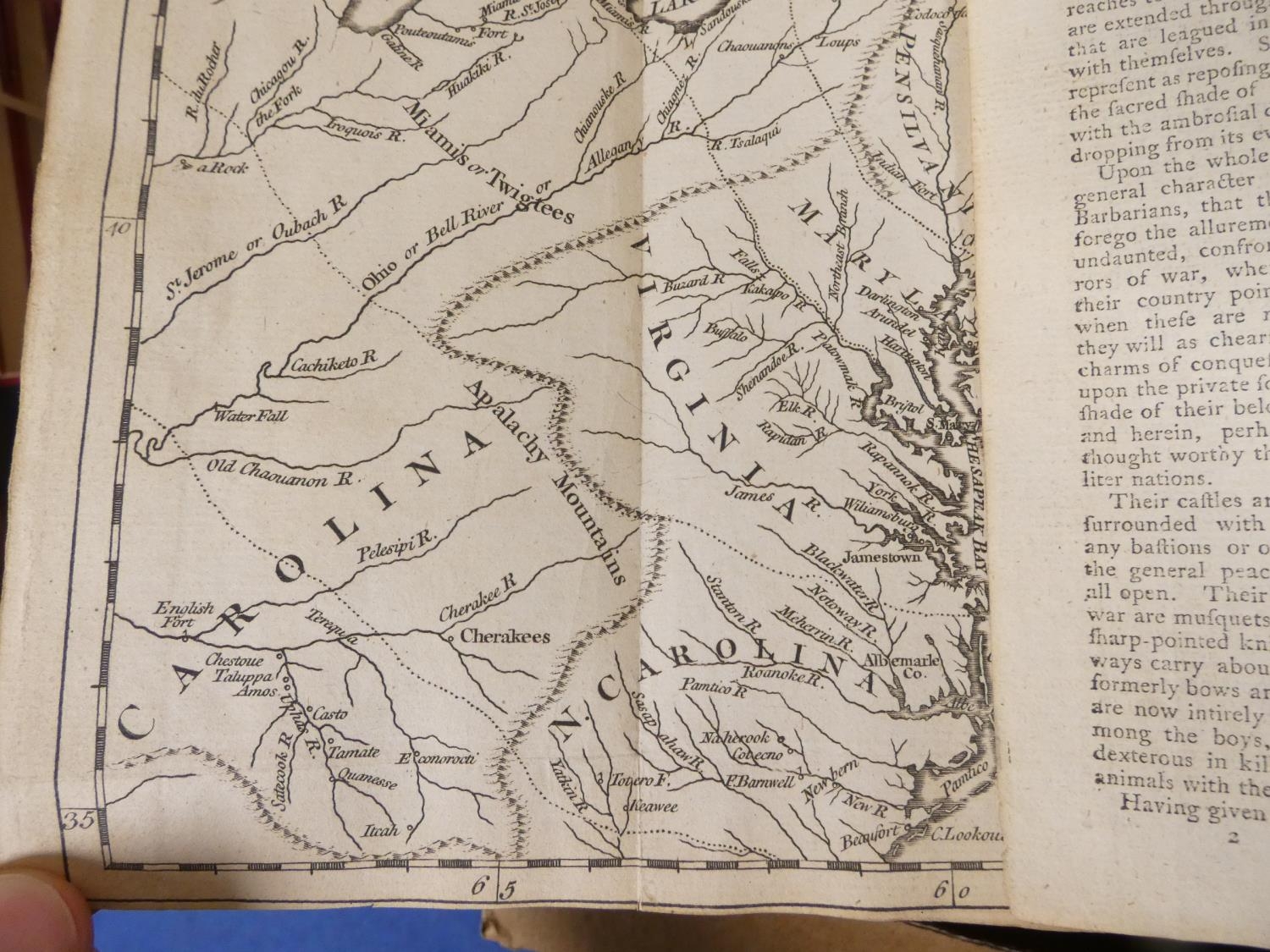 Map of the English Colonies - The map is folded in three. There is a small tear to the upper left corner and a larger tare where the map joins the bindings.