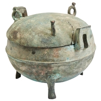 NOTE; This elegant bronze tripod incense burner features a bulbous body richly adorned with archaic designs, evoking the artistic traditions of ancient China. Mythological animals, intricately cast, grasp the rim, forming striking handles that enhance the vessel's grandeur. The cabriole legs, each joining the legs to the body with finely detailed mythological animal heads, provide a sense of strength and stability. The base bears a meticulously rendered Xuande mark, executed with remarkable precision. The exceptional piece reflects the refined craftsmanship and reverence for antiquity characteristic of Chinese bronze work.