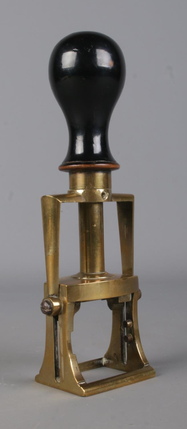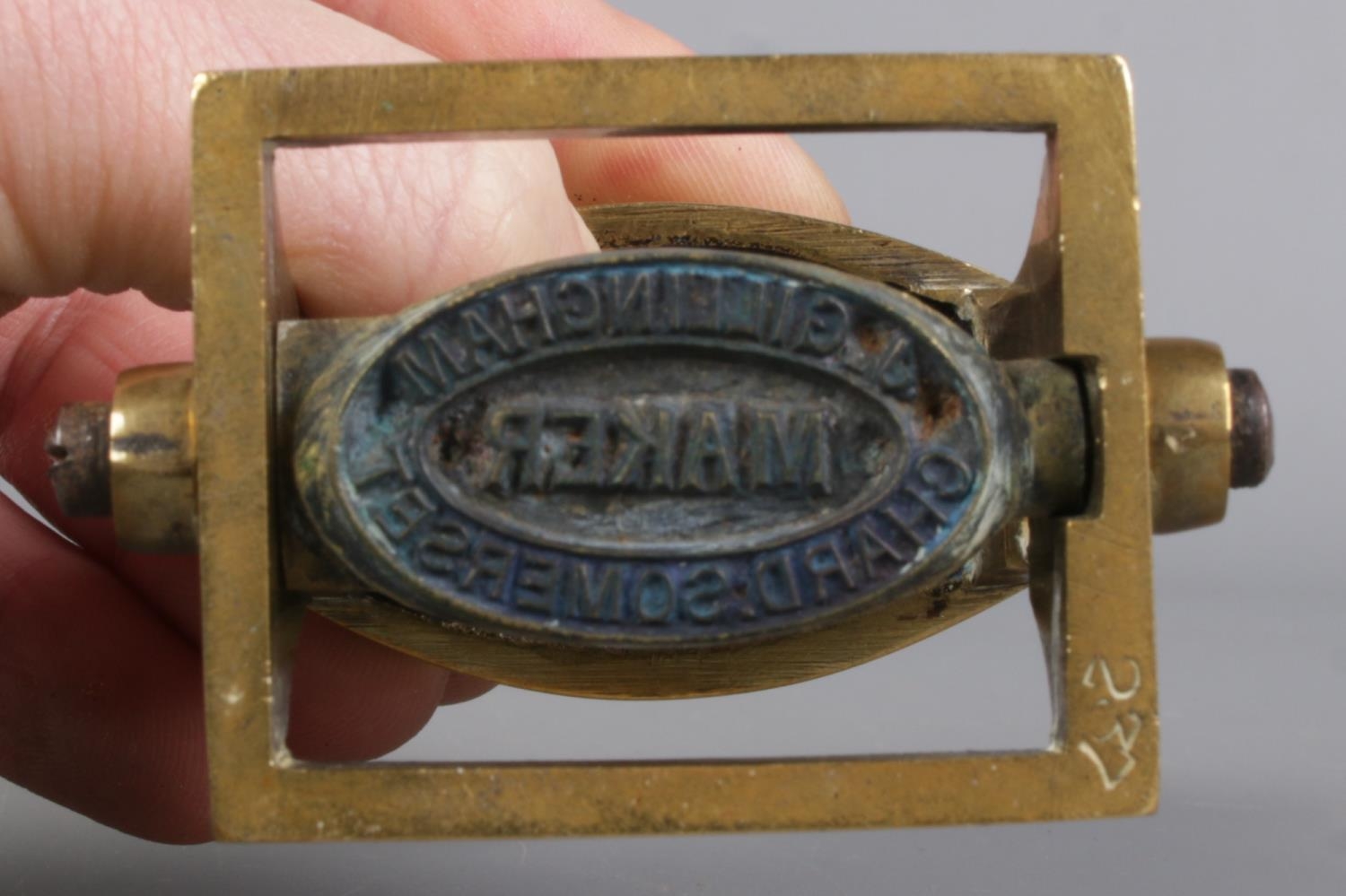 A late Nineteenth/early Twentieth century brass inkpad/desk stamp, for 'Maker J. Gillingham, Chard, Somerset' (known for making prosthetic limbs).