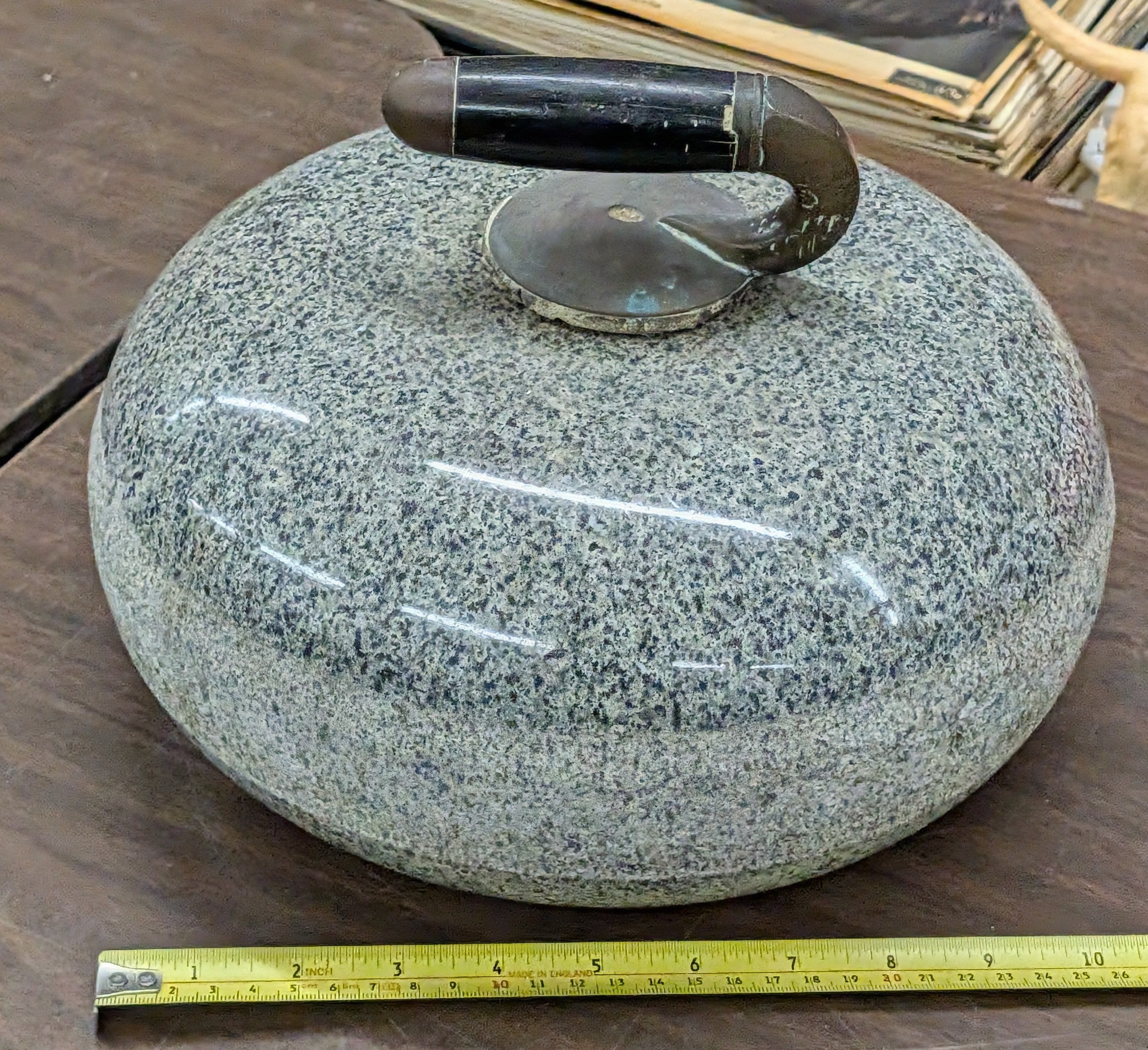 Vintage Polished Granite Highlands Curling Stone with Metal Goose-Neck Handle