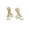 Overall good condition Fittings for pierced ears, posts with butterfly backs Diamonds fairly bright, they vary in cut, some fluoresce Emeralds measure approximately 6.5 by 4.6 by 3.3mm, 5.4 by 4.6 by 3.5mm and 5.1 by 6.1 by 2.8mm, 5.3 by 4.7 by 3.3mm Emeralds vary a little on shape and size, the smaller emeralds have a better depth of colour, all have some fine inclusions, a few fine surface reaching inclusions Clients are advised to view and inspect items before bidding and they must satisfy themselves as to the condition of every lot For enquiries about this lot please contact David Pregun at david@kinghamsauctioneers.com