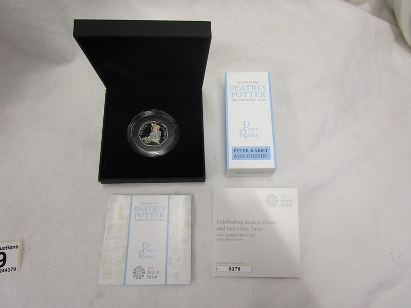 Royal Mint Peter Rabbit silver proof 50 pence coin - Beatrix Potter 2018 - Black box edition