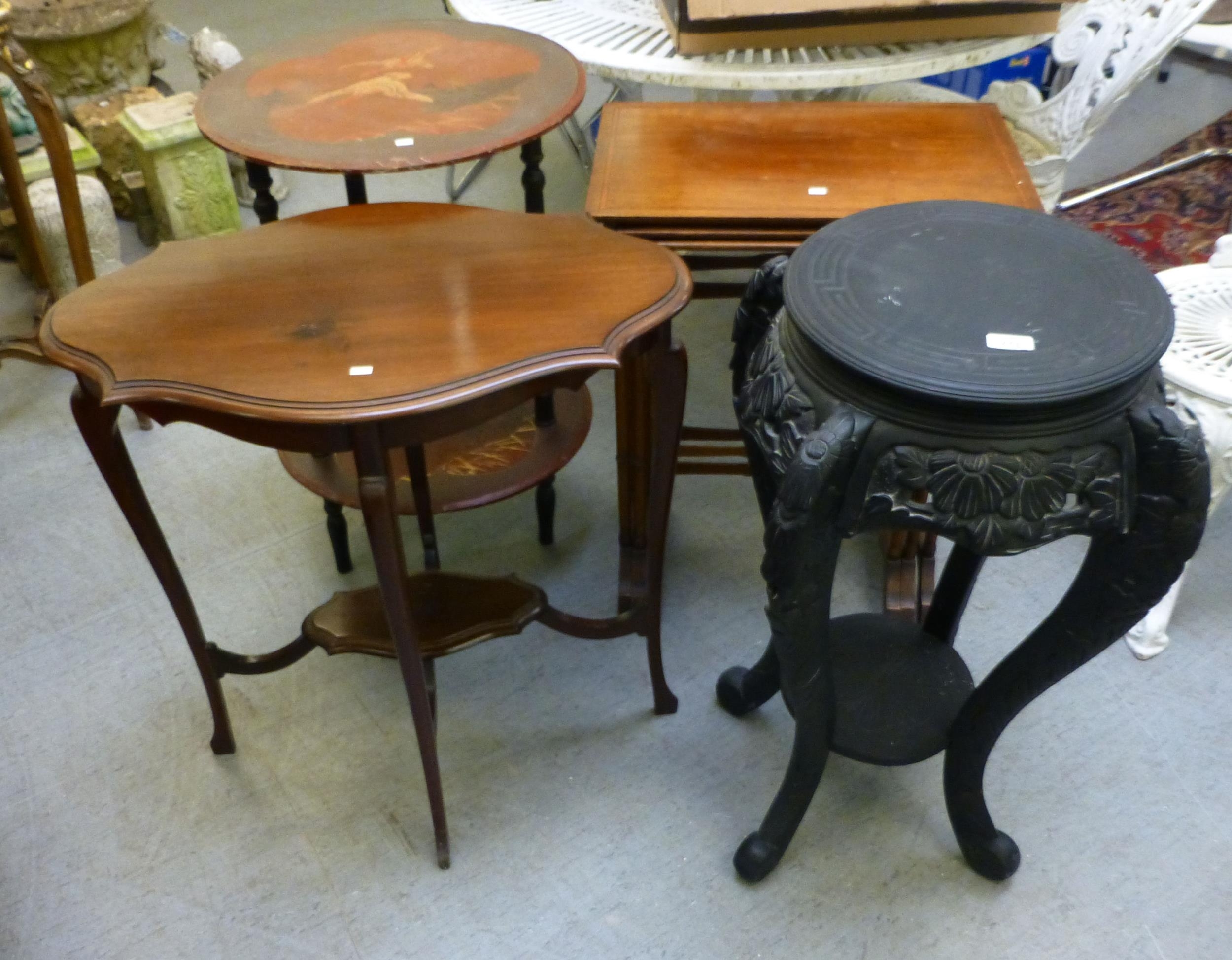 Small furniture: to include an Edwardian mahogany occasional table, raised on cabriole legs 28"h 27"w