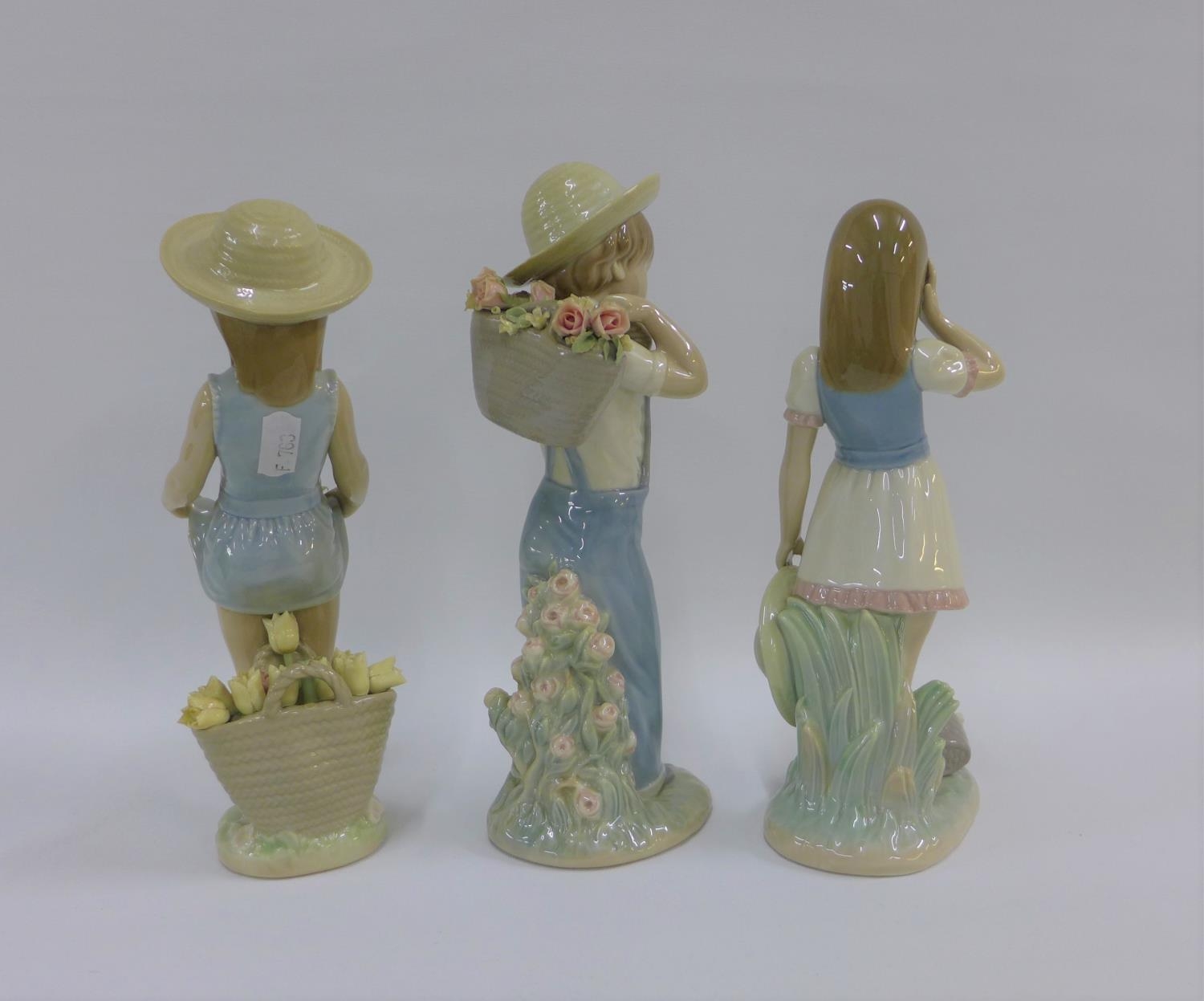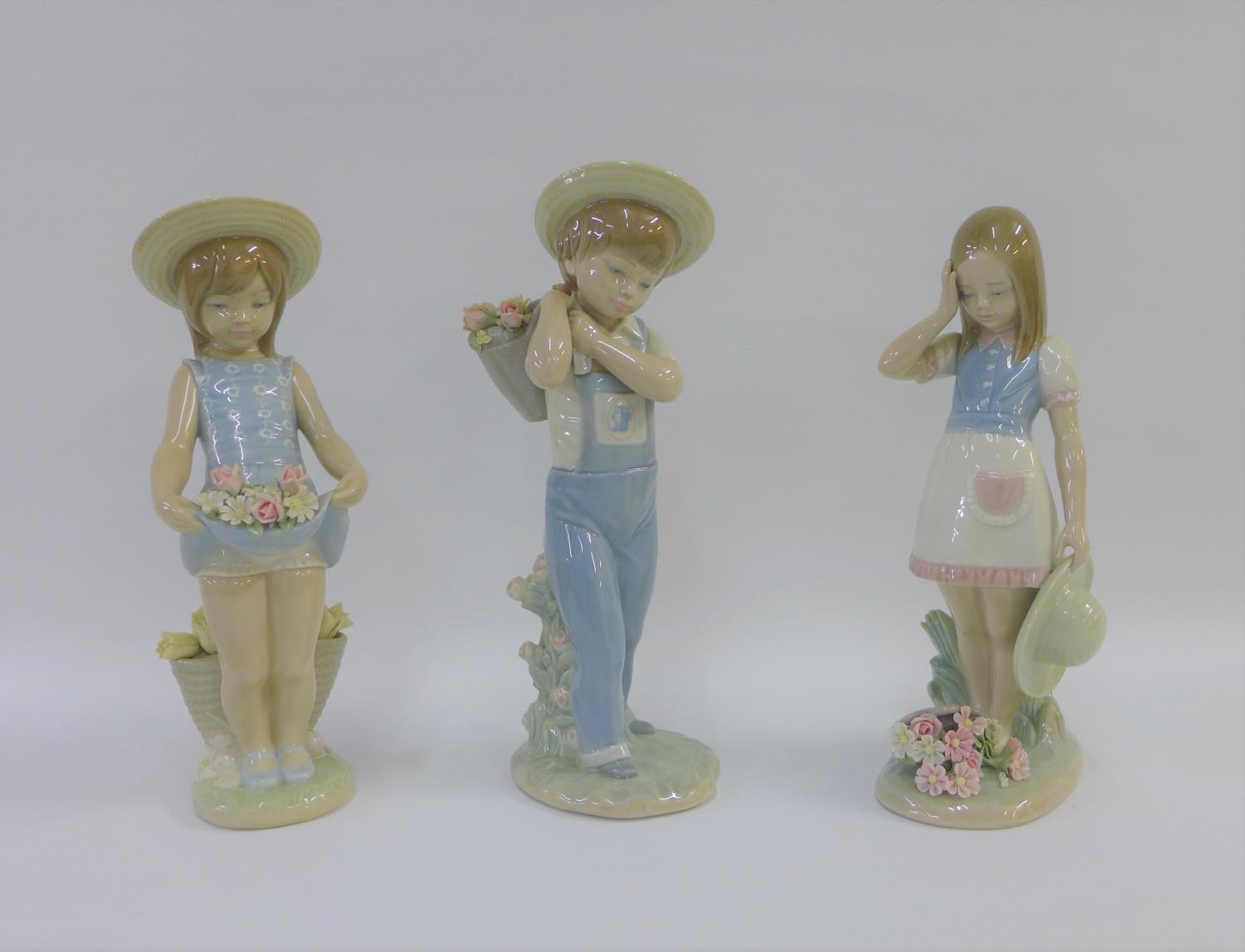 Collection of three Lladro girl and boy figures, all with printed backstamps, tallest 25cm (3)