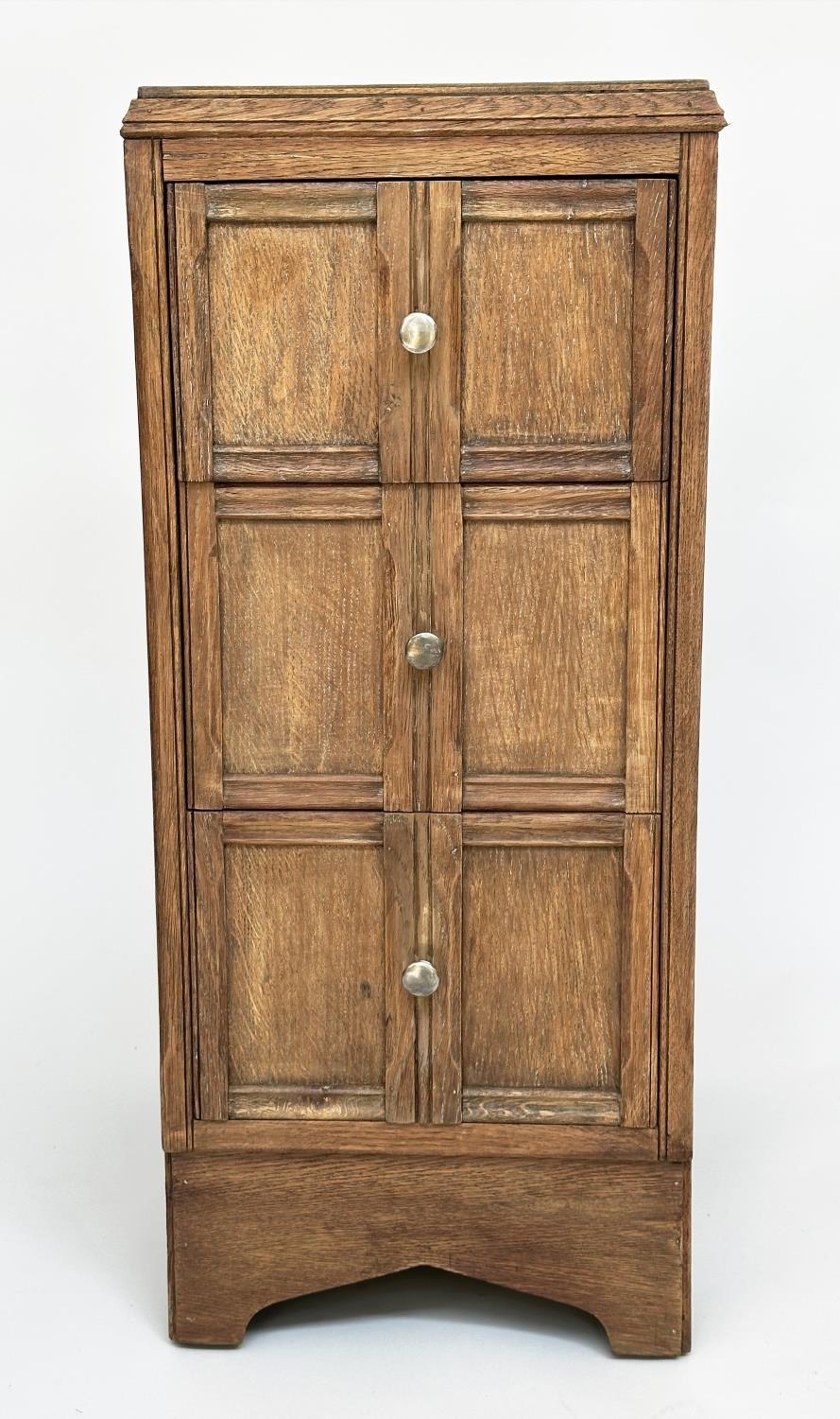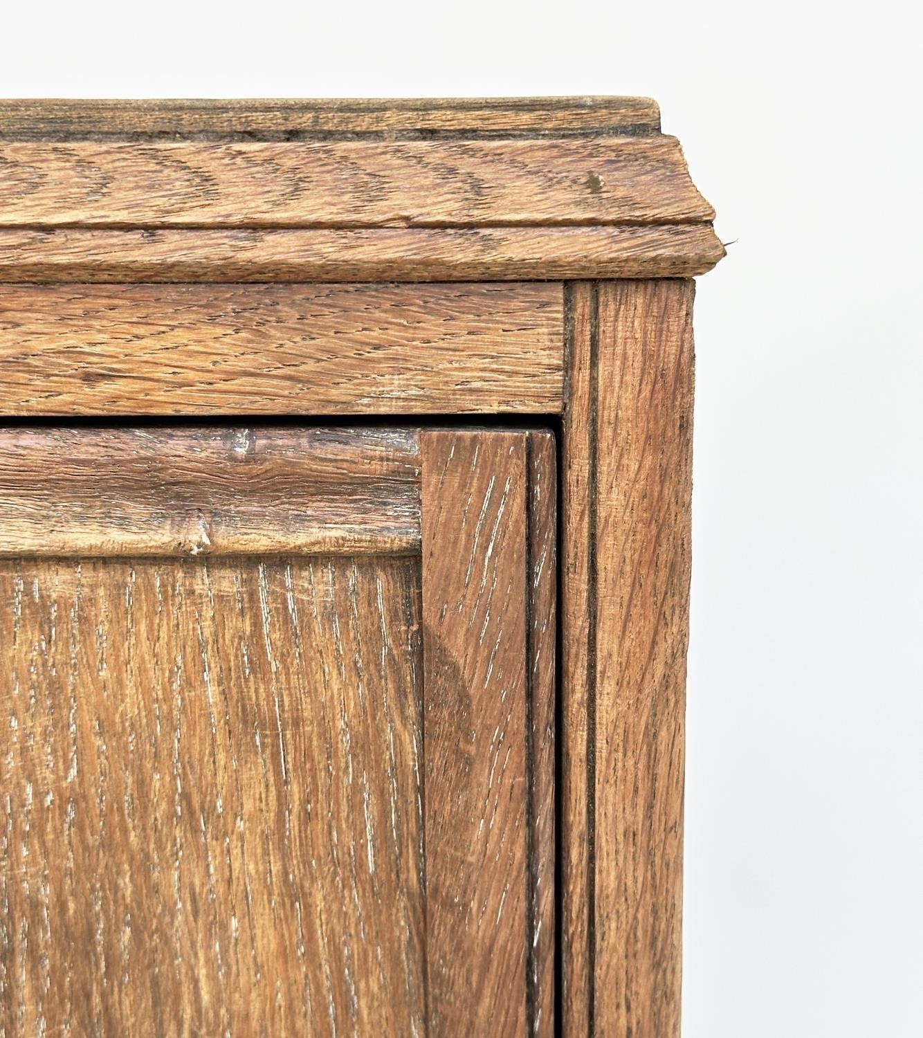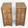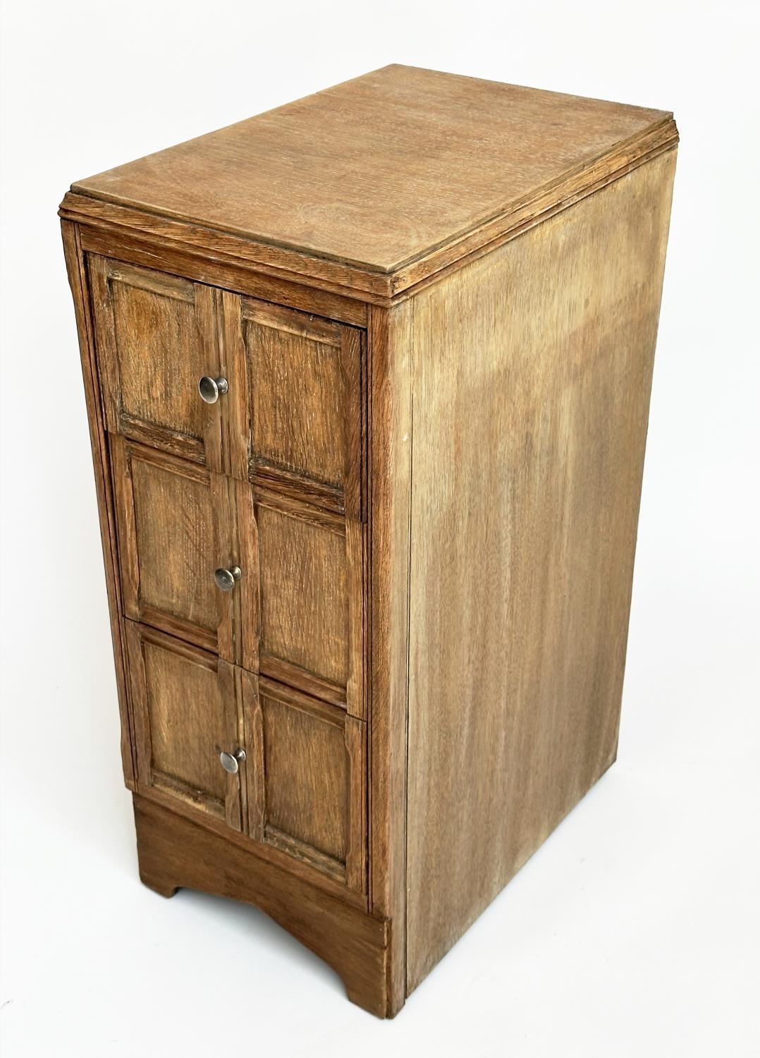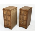 ART DECO BEDSIDE CHESTS, a pair, Heals style limed oak, each with three drawers, 78cm H x 50cm D x 28cm W. (2)