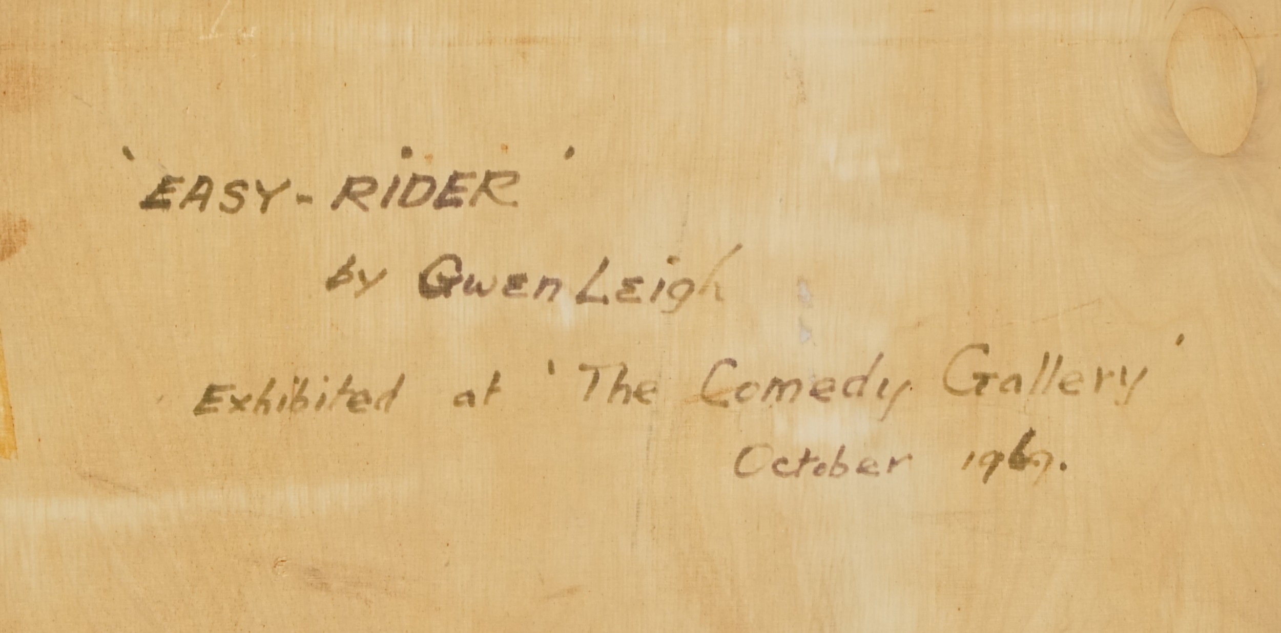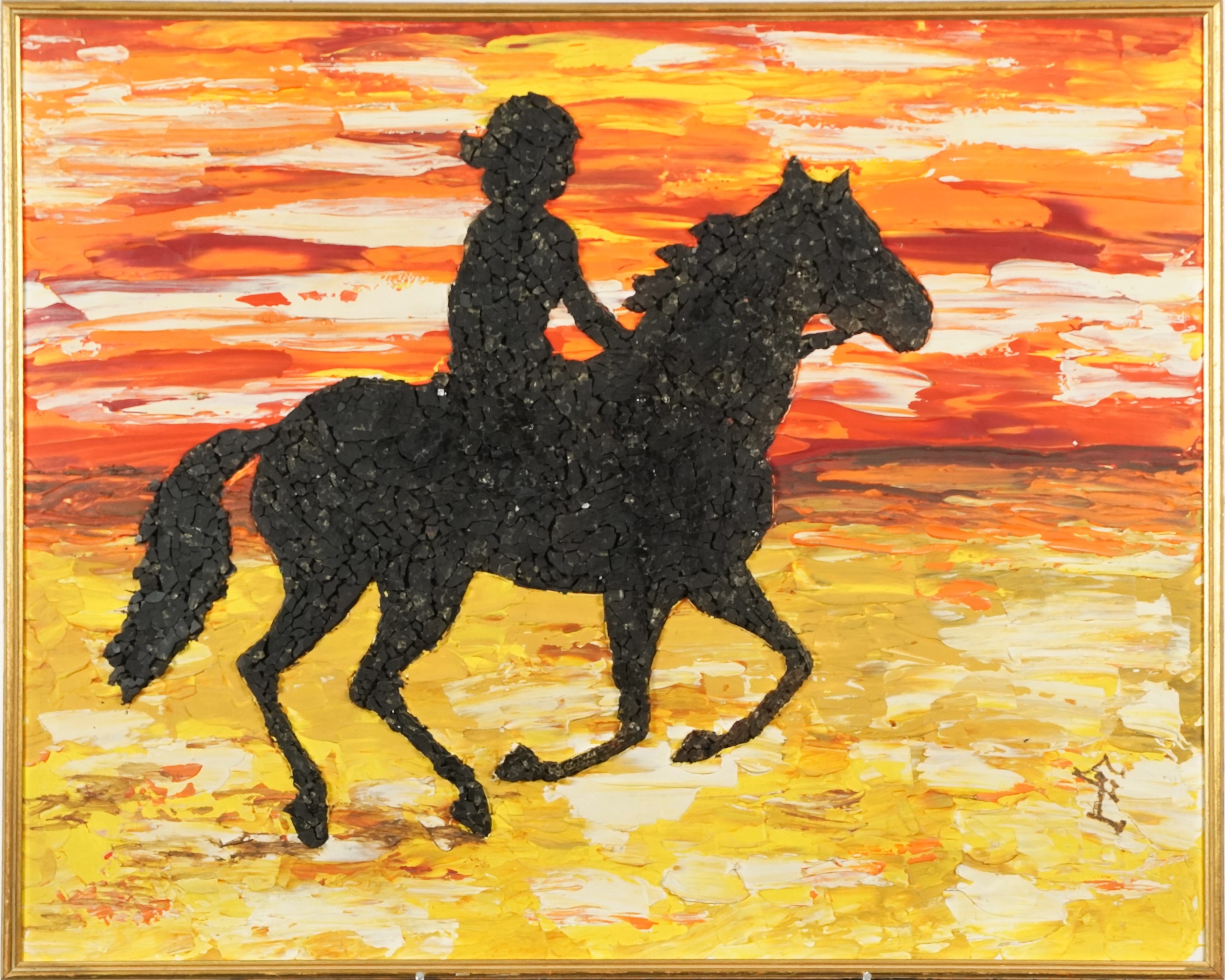 Gwen Leigh - Easy Rider, a 20th century mixed media acrylic and mosaic on board, framed, 60cm x 74cm.
