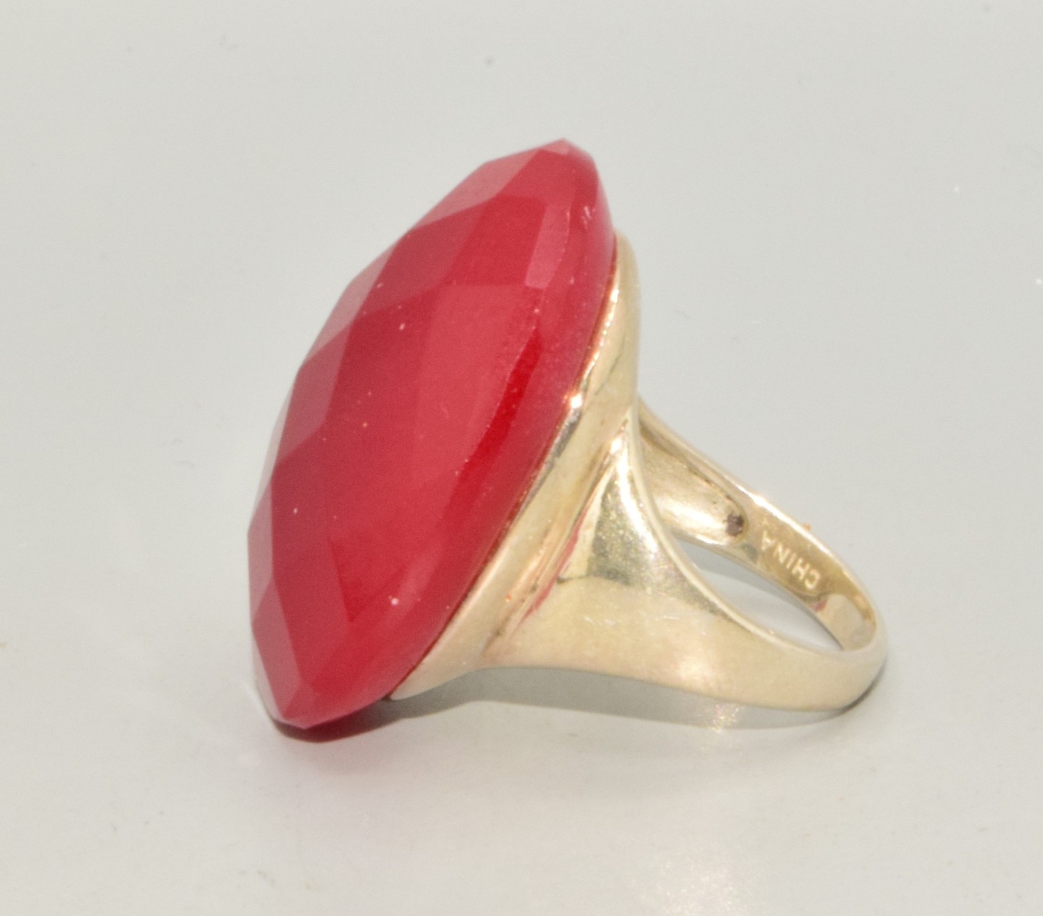 925 silver facetted large oval red gem stone statement ring size L