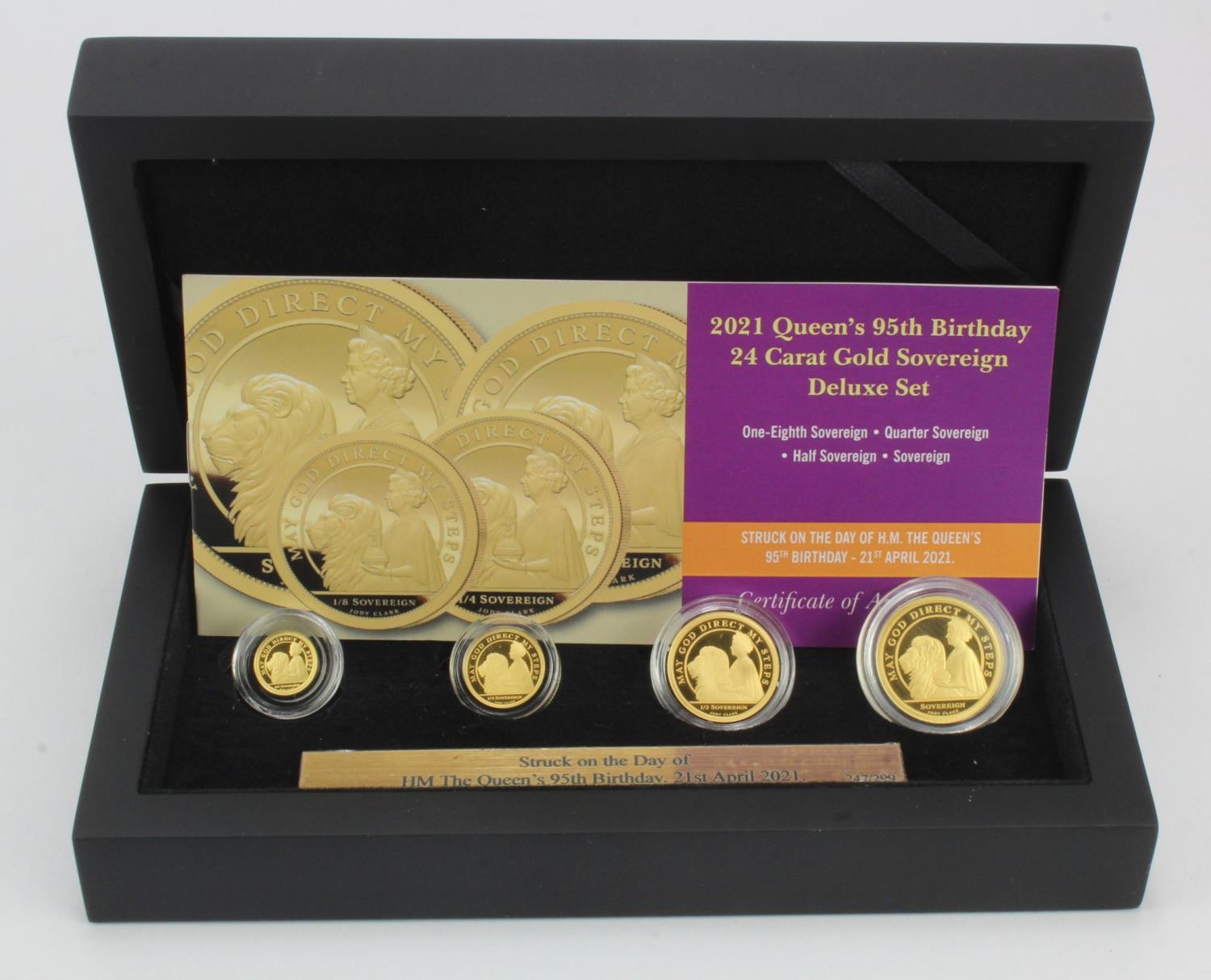 Tristan Da Cunha Four coin gold (24ct) set 2021 (Sovereign, Half Sovereign, Quarter Sovereign & Eighth Sovereign) "Queens 90th Birthday". FDC boxed as issued