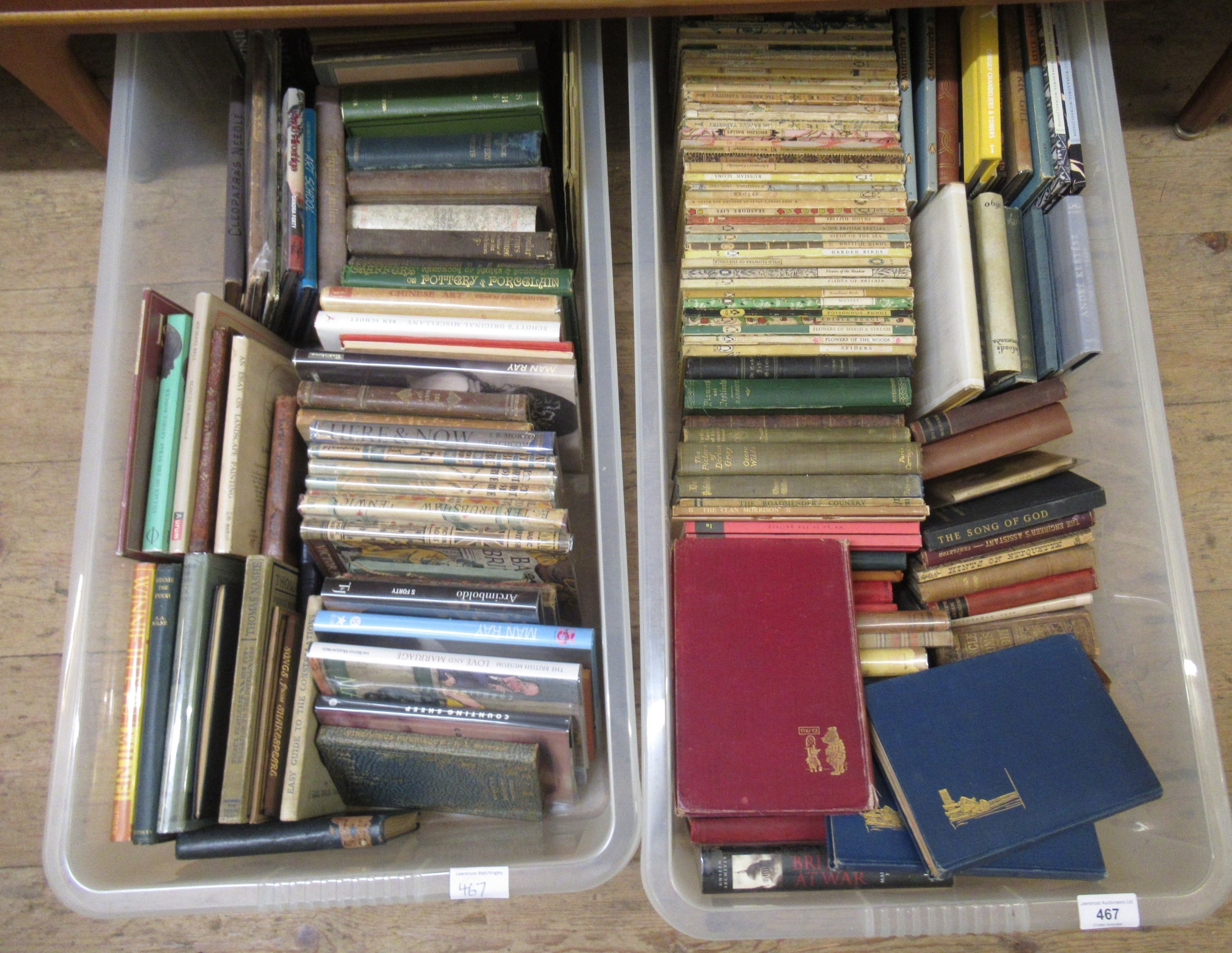 Two large boxes containing a quantity of miscellaneous books including early Penguin