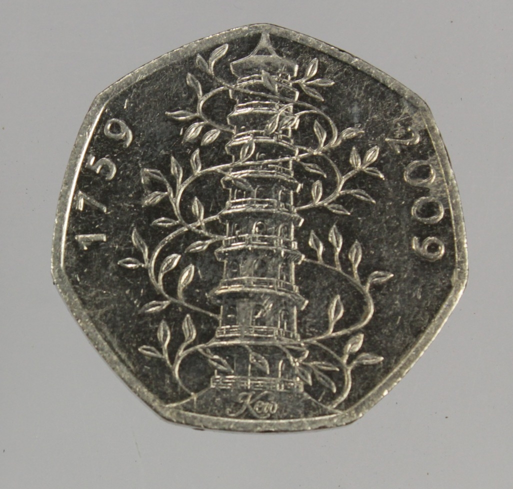 Fifty Pence 2009 Kew Gardens cupro-nickel currency issue, EF bagmarks.