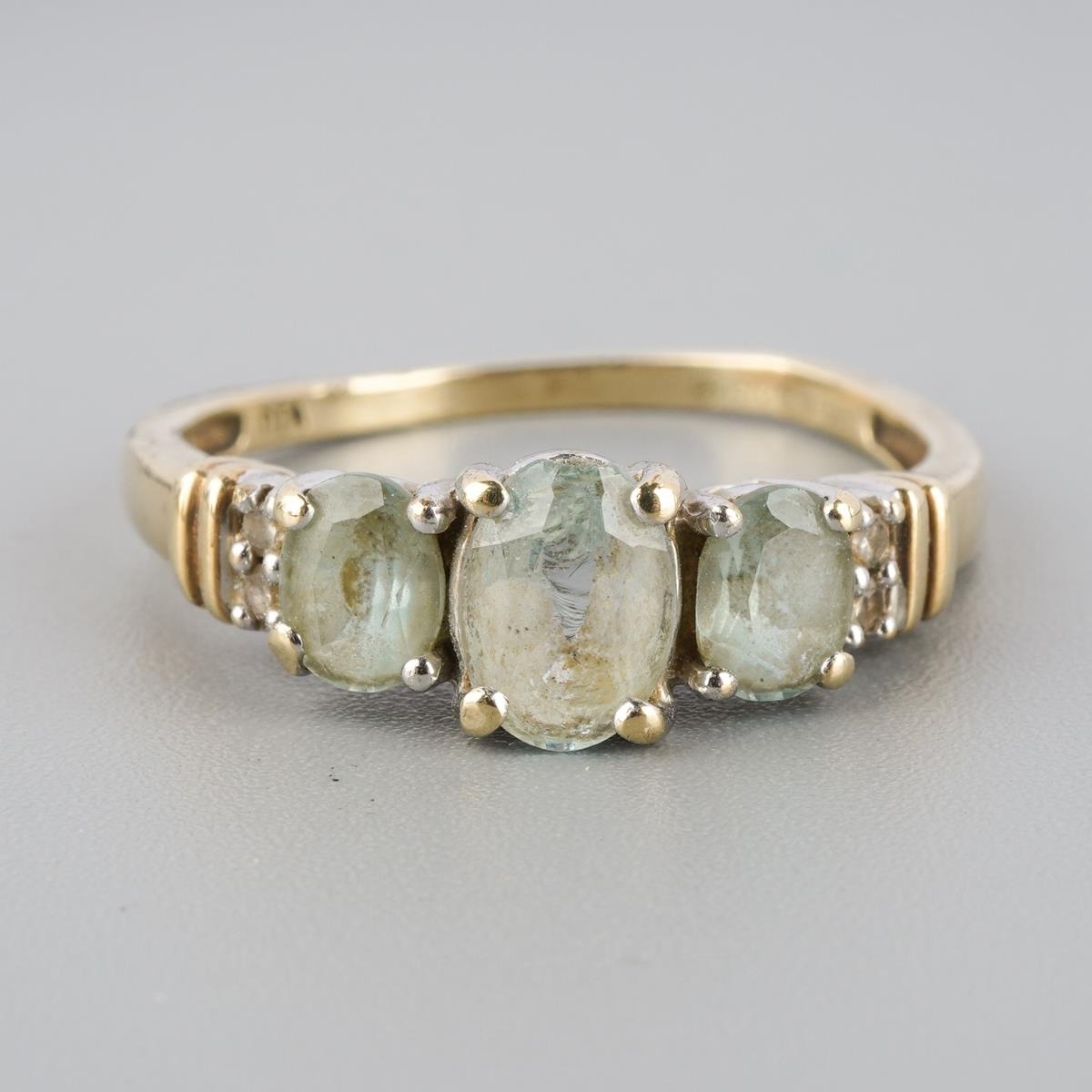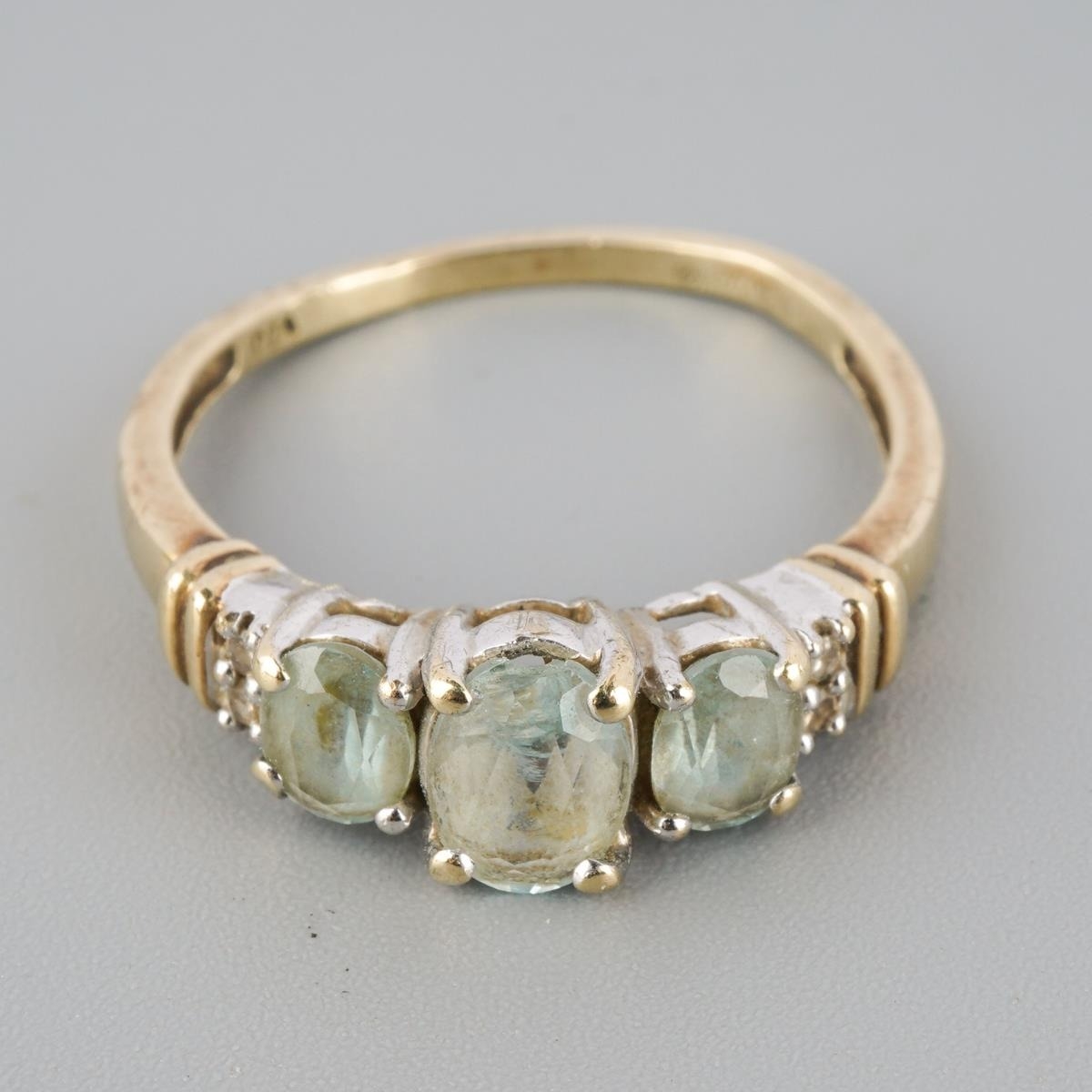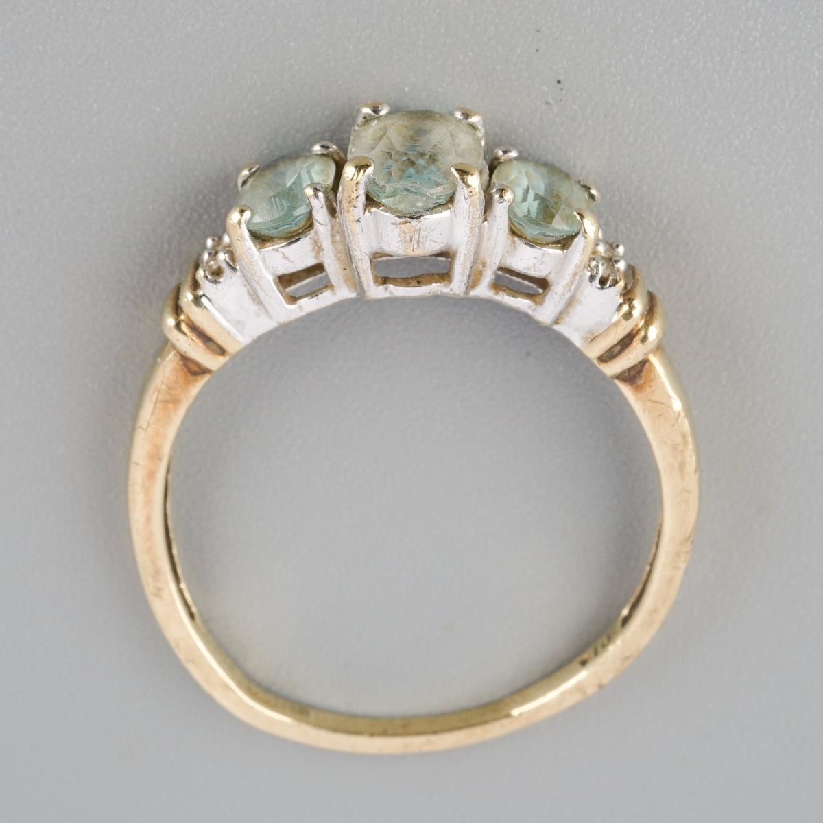 A 9ct gold gem set and diamond ring. Hallmarked 9ct gold, approx ring size R 1/2, approx gross weight 2.2 grams.