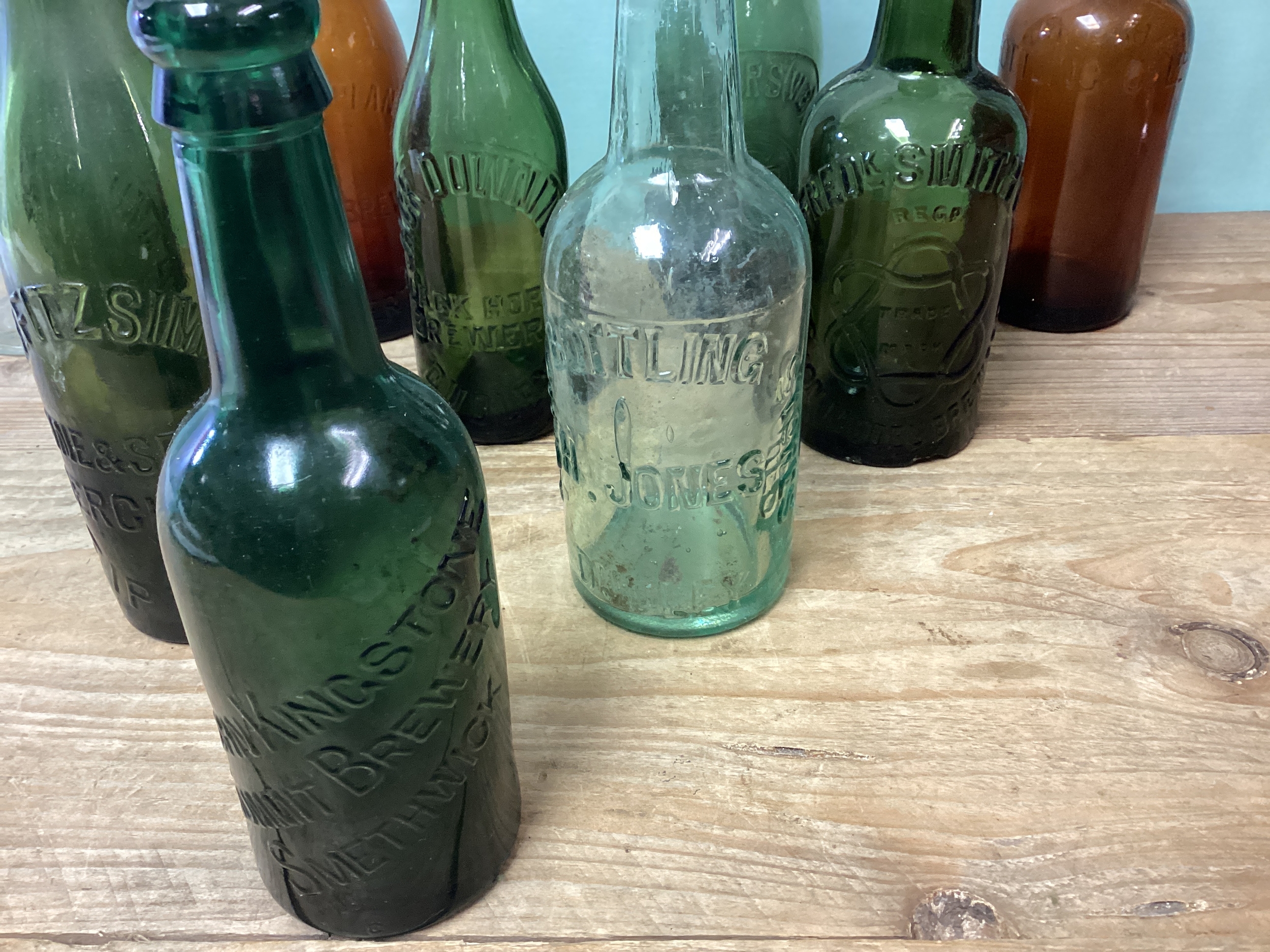 Collection of Vintage Black Country Brewery Bottles, Jones & Downing of Dudley, Kingstone of Smethwick, Fitzsimons of Tipton, Thomas Plant Netherton, Fred Smith Aston, Spencers West Bromwich & The Bath Row Birmingham