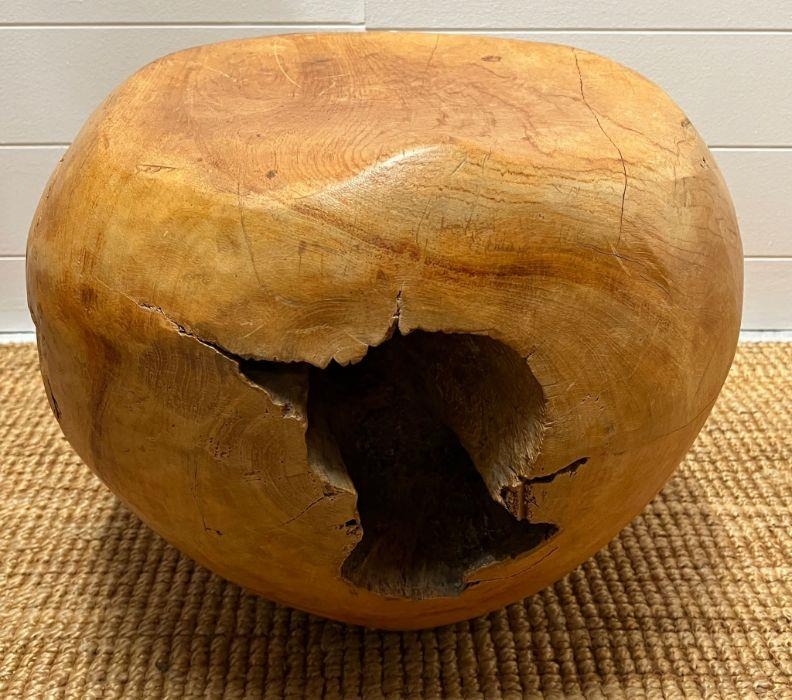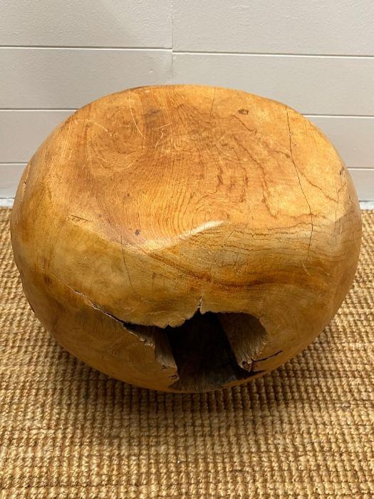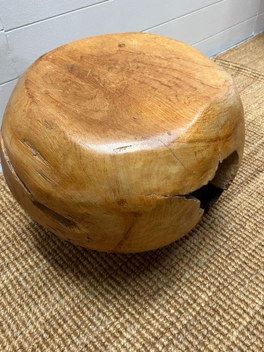A teak stool with smooth shape with cracks and organic form (H37cm)